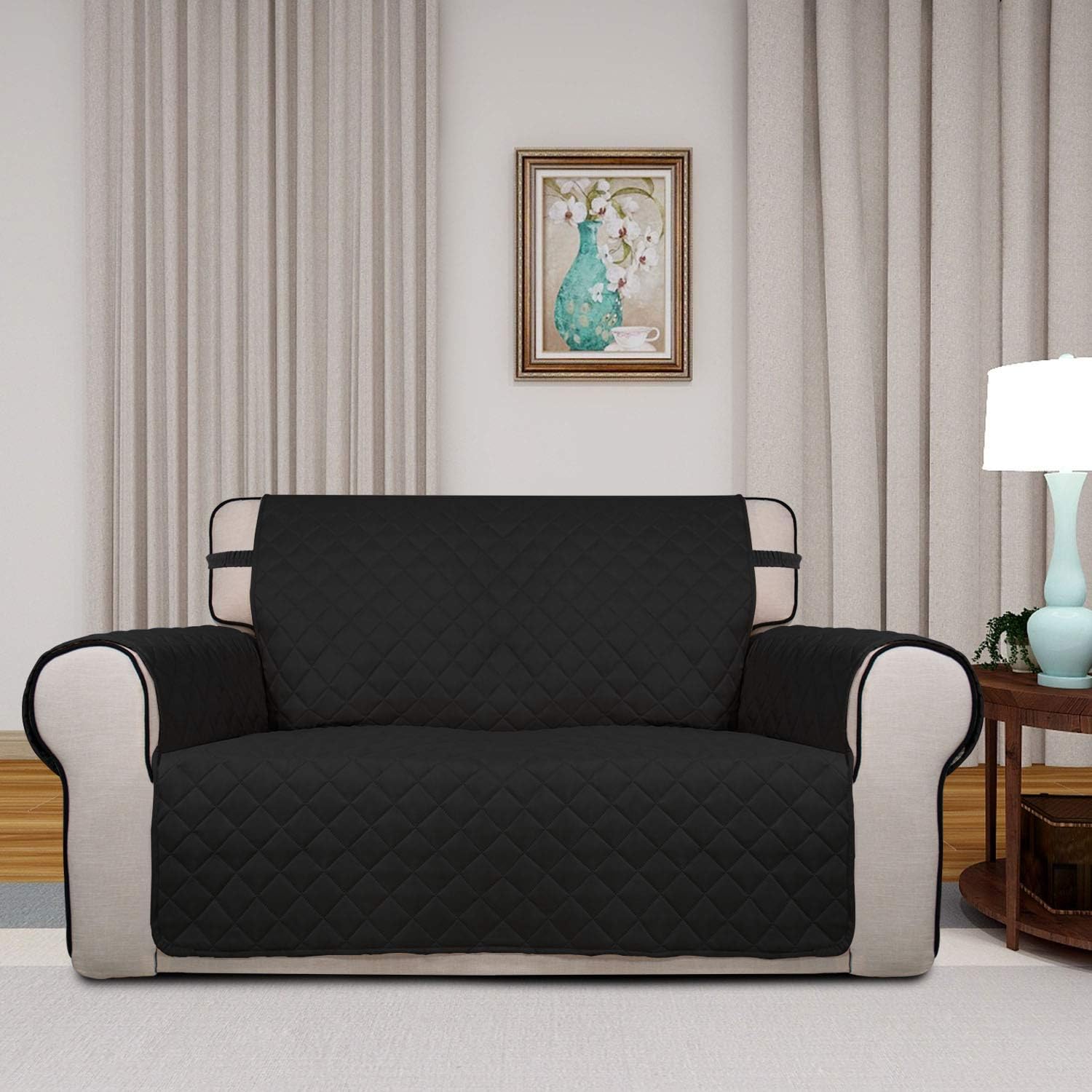 PureFit Reversible Quilted Sofa Cover, Water Resistant Slipcover Furniture Protector, Washable Couch Cover with Non Slip and Elastic Straps for Kids, Dogs, Pets (Loveseat, Black/Beige)