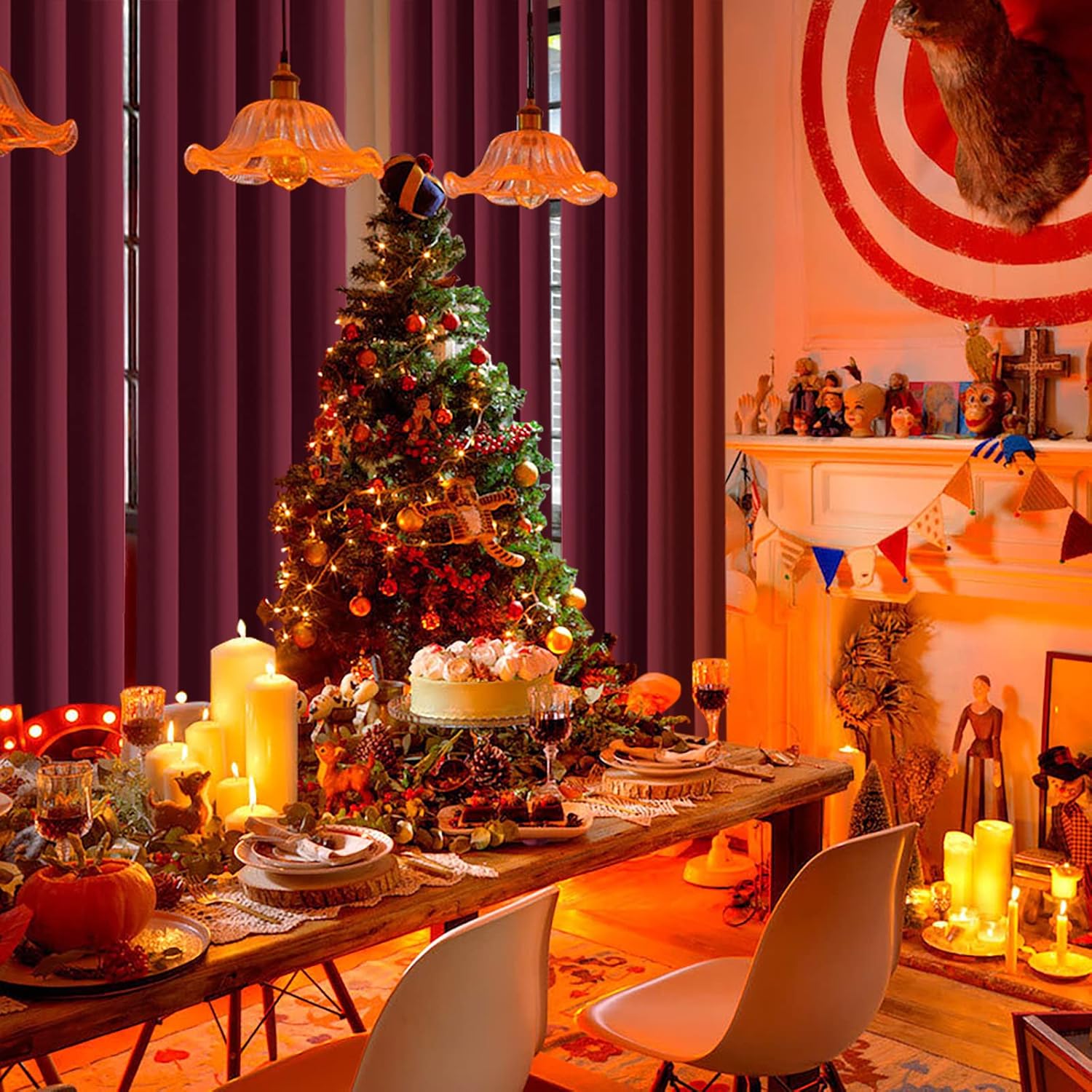 - Package Includes: Set of 2 burgundy blackout curtains; each panel measures 42 Inch wide by 84 Inch long.