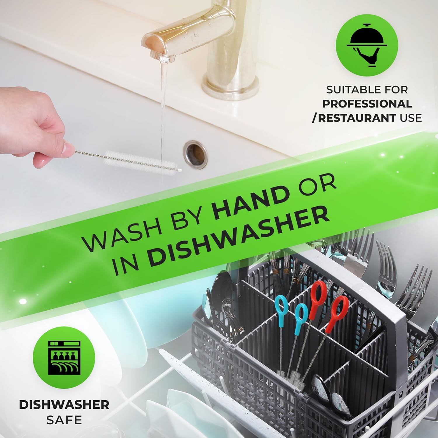 Heavy Duty Cleaning Brushes Set of 4 - Extra Long Straw Cleaners for Metal and Plastic Reusable Drinking Straws, to Clean Small Spaces, Sippy Cups, Water Bottles - Sturdy Hard Brush Bristles