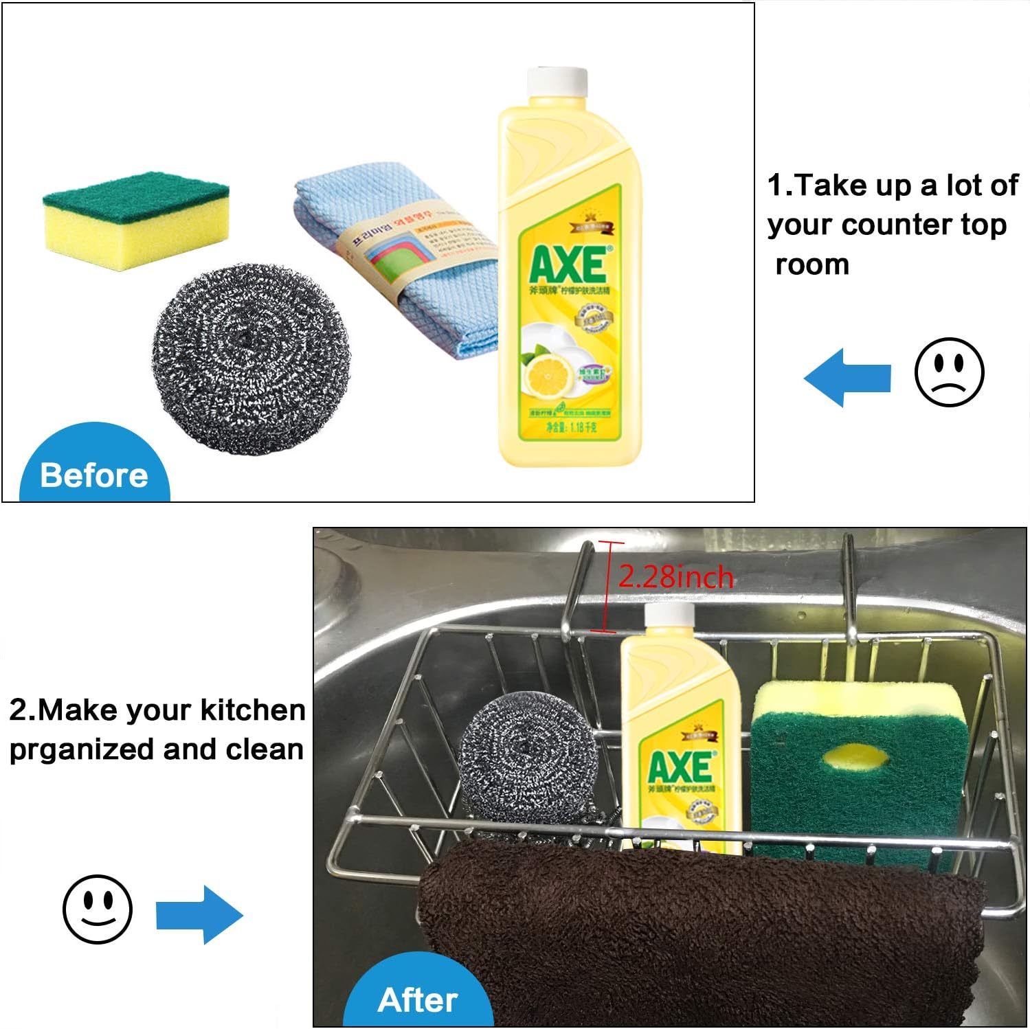 - ✅MORE CONVENIENT TO DISHWASH - Perfect to hold sponge, soap, brush, towel, more convenient for you during washing dishes. Unique outer rack design, it creates a space for your kitchen towel, very functional.