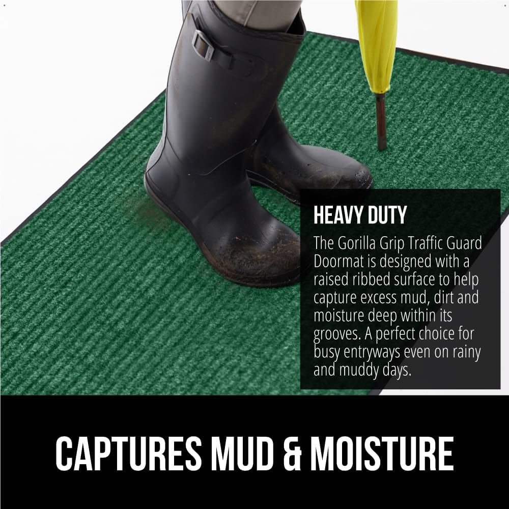 GORILLA GRIP Traffic Guard Door Mat, Heavy Duty Welcome Mats, Commercial Office Space Doormat, Waterproof, Fade Resistant, Strong Rubber Backing, Low Profile, Shoe and Boot Scraper, 35x23, Green