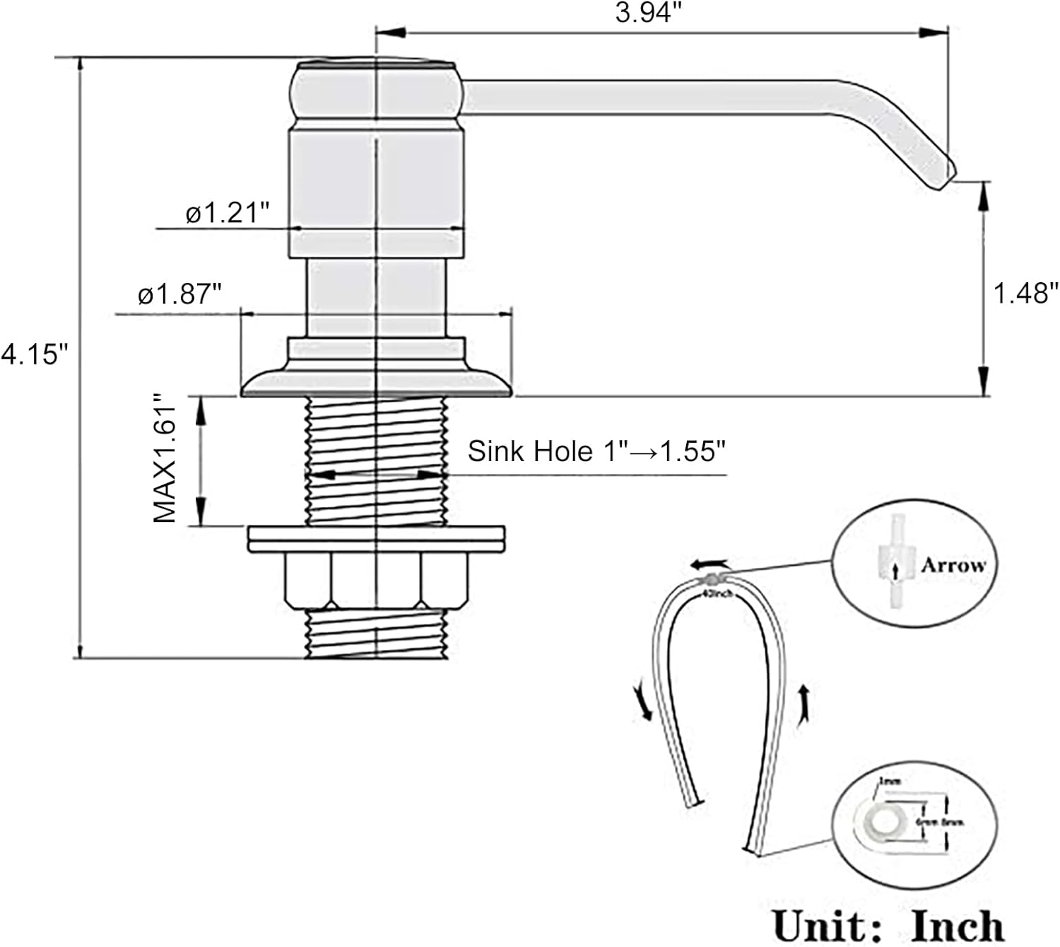 - 【EASY TO INSTALL】Include the Detailed installation instructions, no plumber is required, finishing DIY installation only takes a few minutes. And enjoy your new style soap dispenser 【Fits 1 to 1.55 inch Hole】