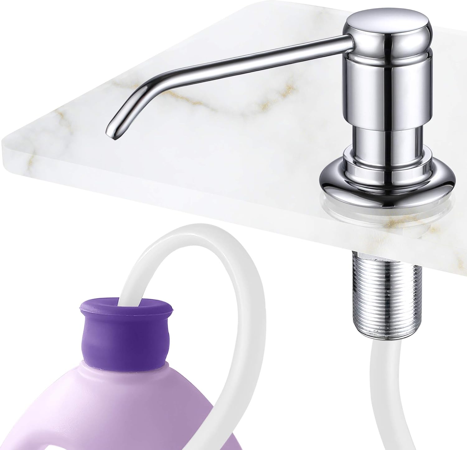 - 【NO MORE MESSY REFILLS】No more crawling under the sink. Our elegant soap dispenser comes with a tube that goes directly into a large dish soap bottle , you can skip the frequent refill process