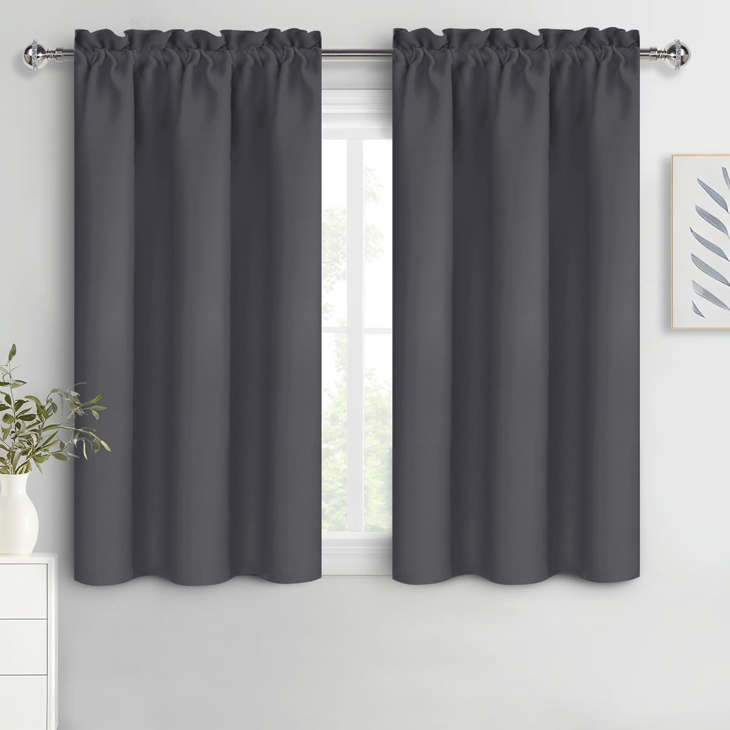 DWCN Kitchen Curtains for Small Windows 45 Inch Length 2 Panels Set, Solid Thermal Insulated Energy Saving Rod Pocket Window Treatment Curtains Blackout Drapes (W38 x L45 Inch, Dark Grey)