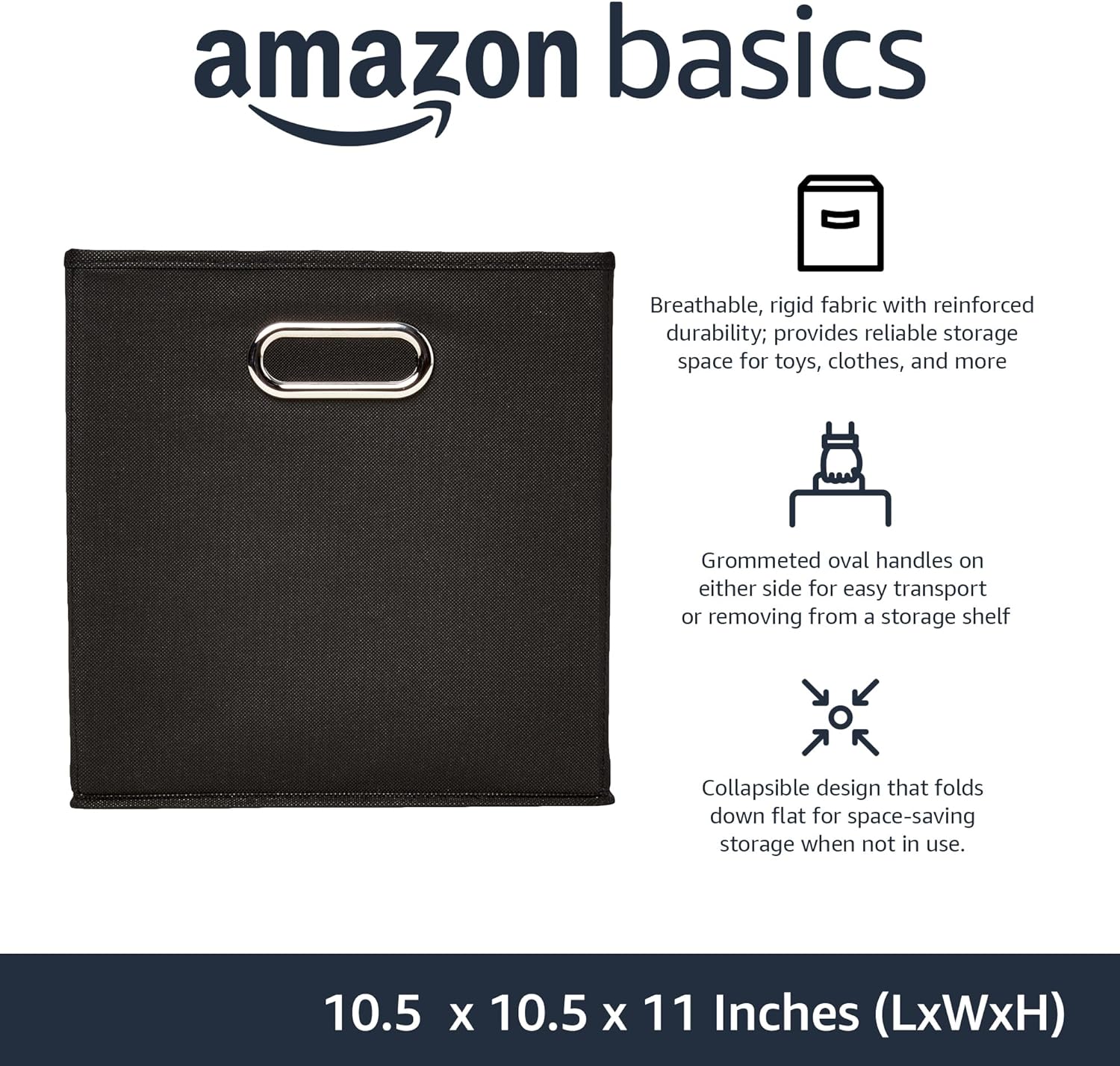 Amazon Basics Collapsible Cube Storage Organizer Bins, 6-Pack, 10.5 x 10.5 x 11 inches, Black