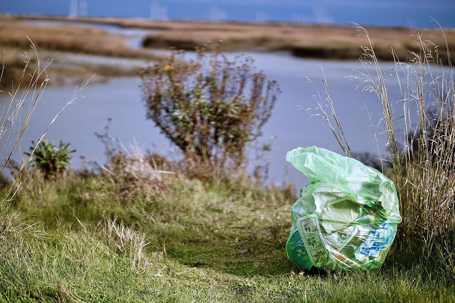 - Disclaimer: When placing non-compostable trash in a compostable trash bag, the rate of the plastic breaking down for a compostable bag will not be significantly different than a non-compostable bag buried in the same conditions at a landfill with anaerobic conditions.