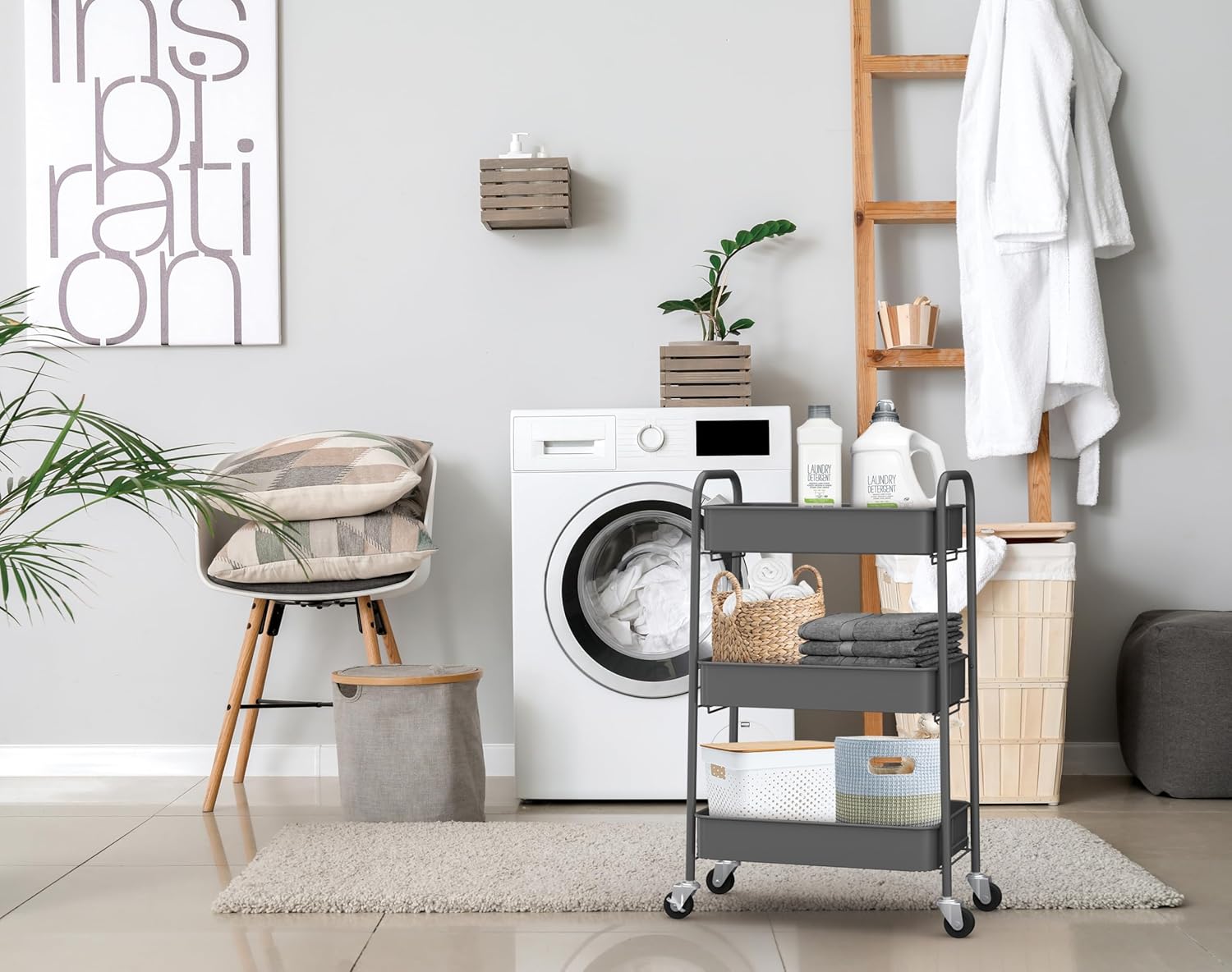 - Built to Last - Durable powder-coated steel frames and mesh baskets.