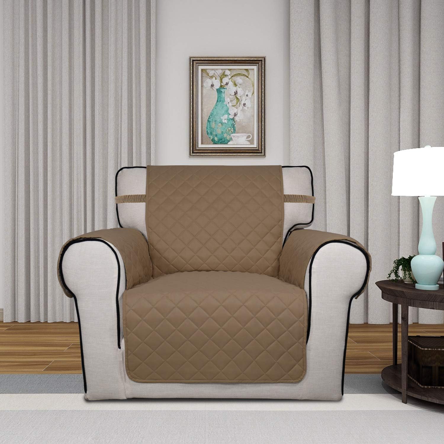 PureFit Reversible Quilted Sofa Cover, Water Resistant Slipcover Furniture Protector, Washable Couch Cover with Non Slip and Elastic Straps for Kids, Dogs, Pets (Chair, Camel/Ivory)