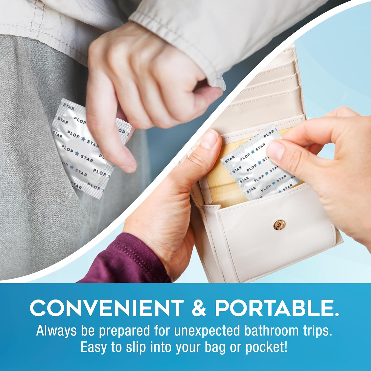 - CONVENIENT & PORTABLE: Plop Star’s individually wrapped toilet bowl deodorizer tablets are compact and travel-friendly, making them easy to slip into your bag or pocket. Always be prepared for unexpected bathroom trips, whether at home, work, or on the go with our toilet odor eliminator.