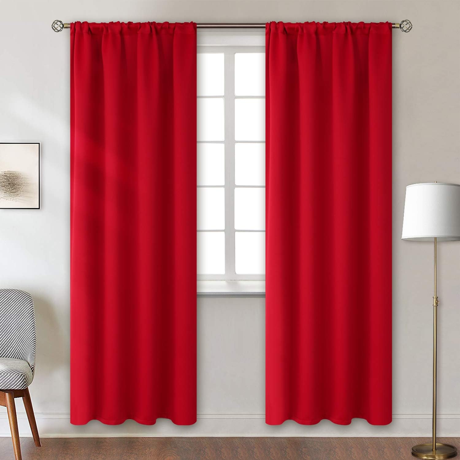 - Package Includes: Set of 2 red blackout curtains; each panel measures 42 Inch wide by 84 Inch long.