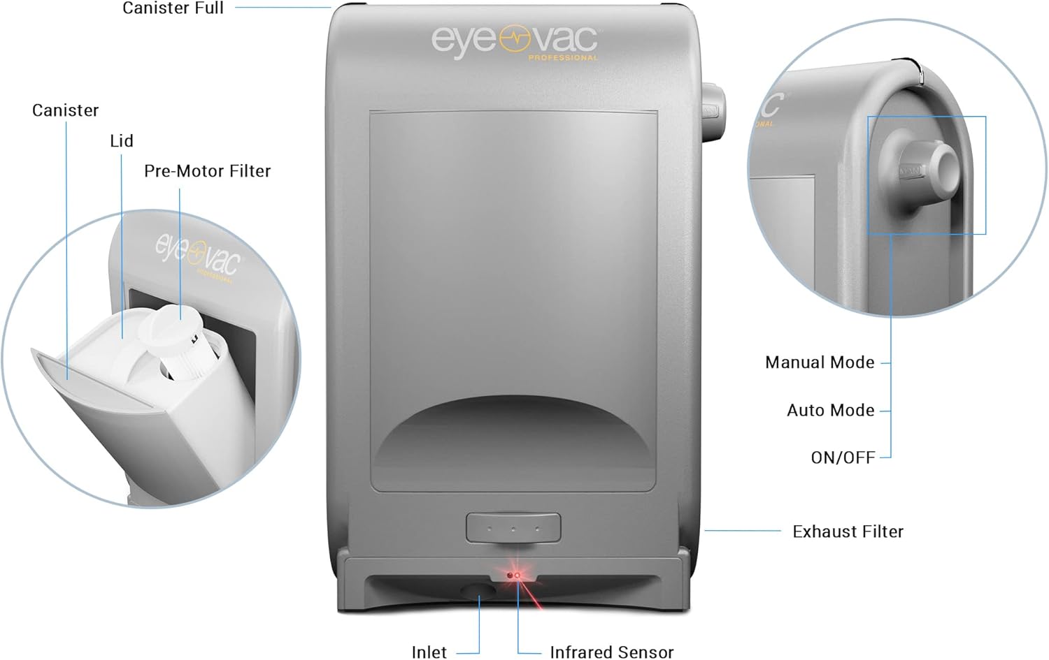 - CONVENIENT: always on and always ready infrared sensors activate Eye Vac automatically