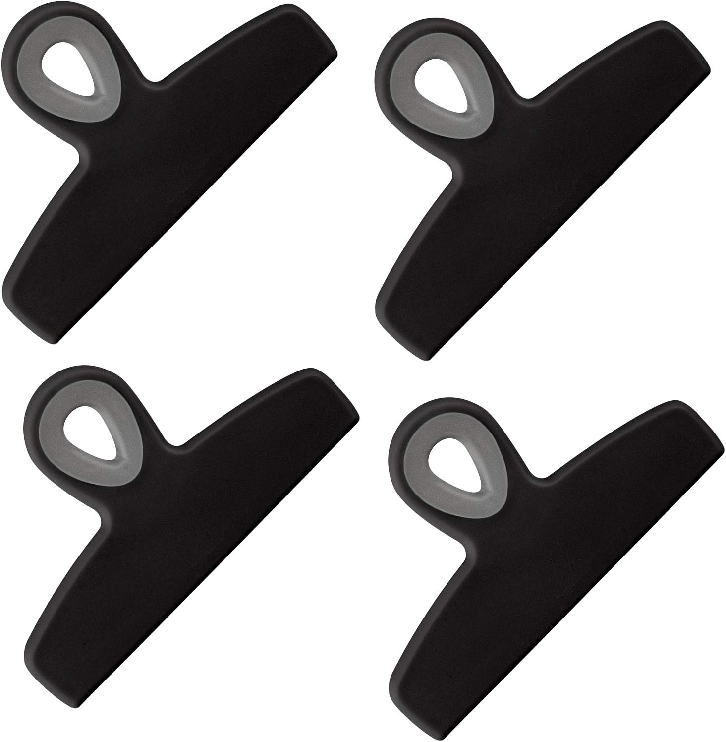 COOK WITH COLOR Bag Clips - Heavy Duty Chip Clip and Refrigerator Magnet Clips for Food Storage with Air Tight Seal Grip, Black, Pack of 4 Large Clips