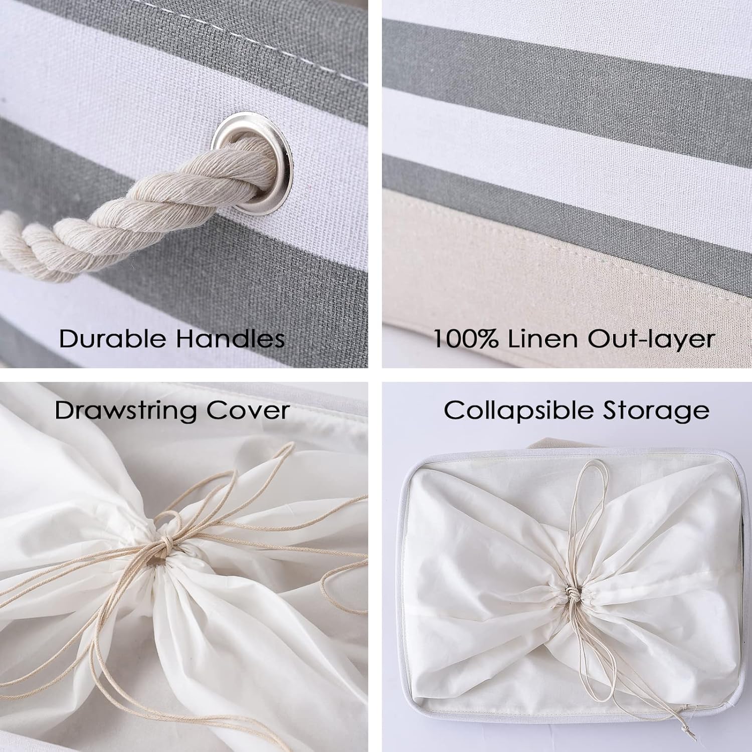 - 【ARTISTIC】: TheWarmHome Fabric Bins had great storage capacity and stylish. Minimalist design and neutral color exterior fabric can be integrated into any home decorations and styles. White cotton rope handles on the sides add a nature touch. The storage basket is like an art, not only provide a solution to many storage needs make home keep clean and tidy, doubles as a charming decoration. TheWarmHome, WARM YOUR HOME.