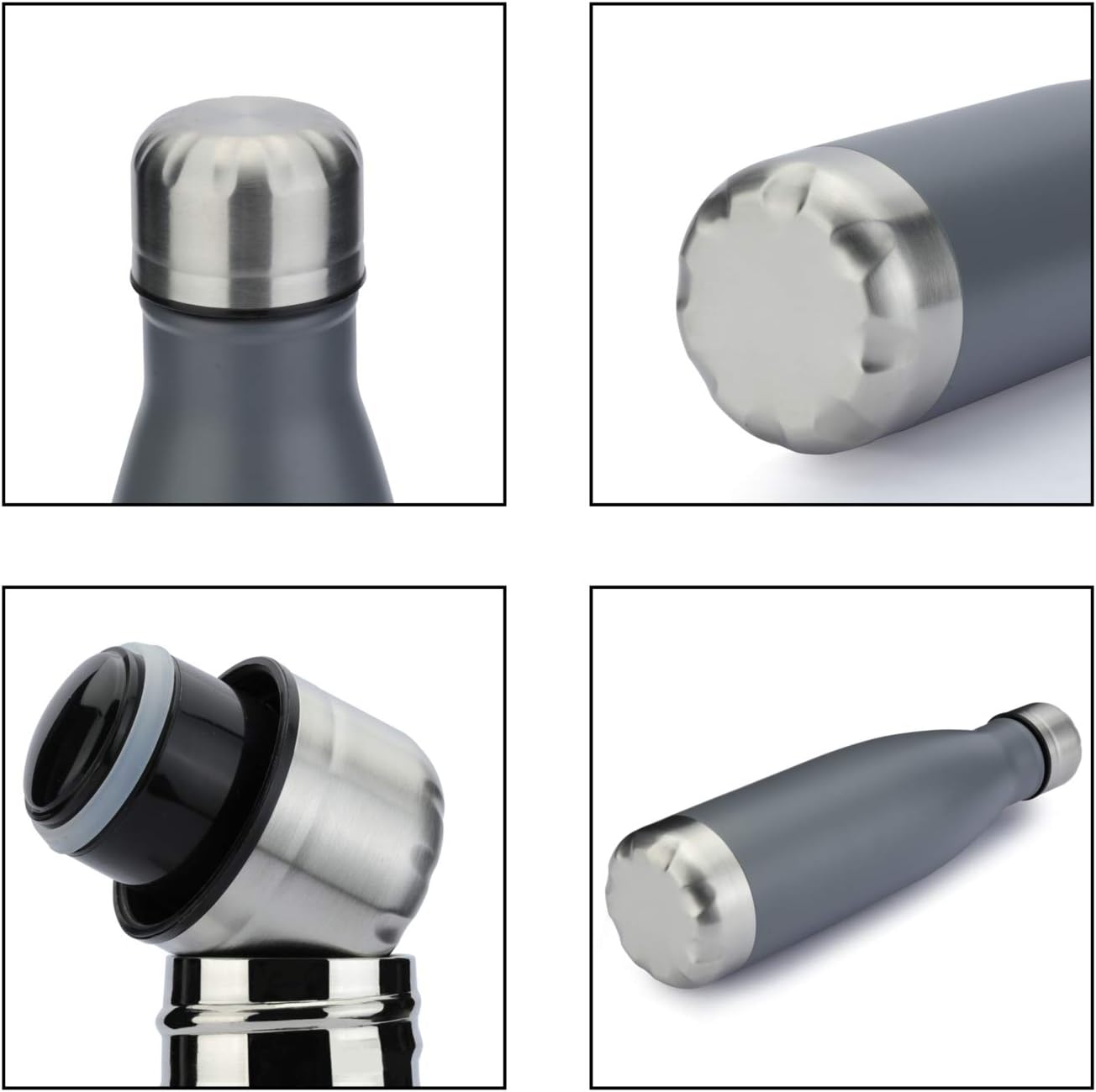 - NO LEAKS:The travel water bottle comes with a leak proof, insulated,NO BPA and Phthalates cap. The stainless steel lid will prevent any accidental spills. This multifunctional water bottle is easy to grab, while you are on the go