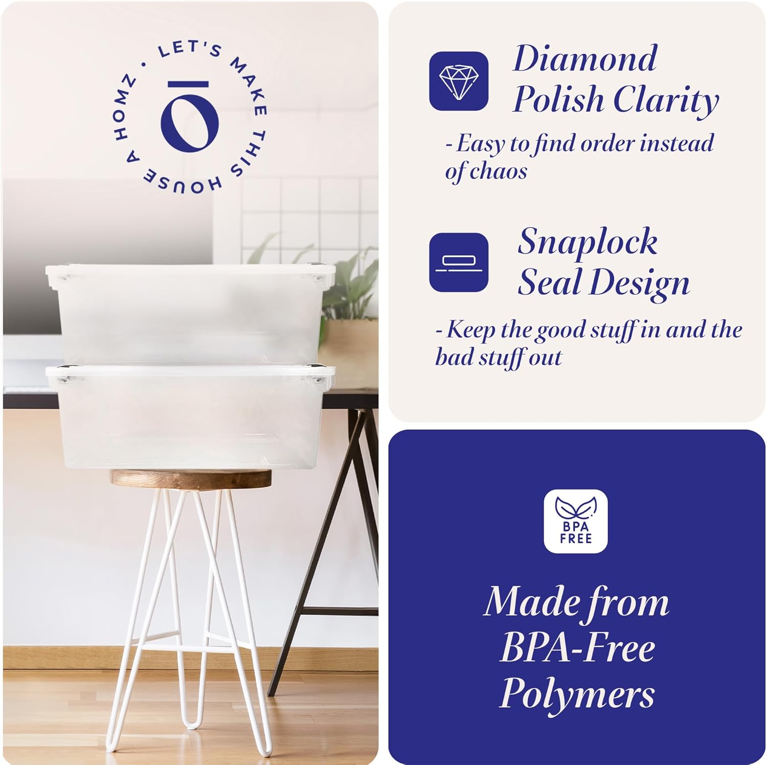 HOMZ 2-Pack Secure Latch, Clear Plastic Storage Organizer Bins, 64 Quart, Gray Latches - Stackable Container Boxes for Bedroom, Bathroom, Garage, and Office Organization