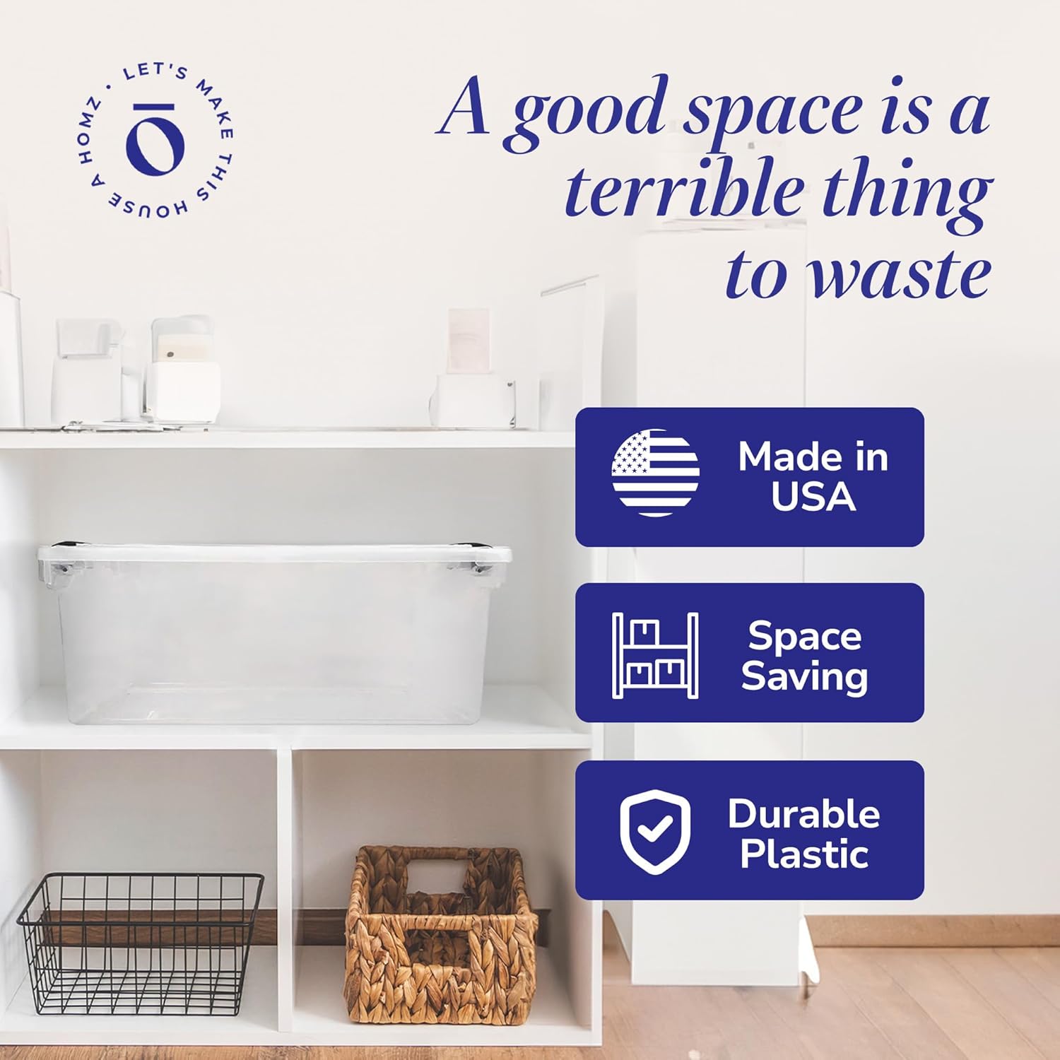 - No Wasted Space: Our set of plastic totes fits perfectly into any room. Keep your treasures safe with our locking sides and locate your items in a snap with clear sides