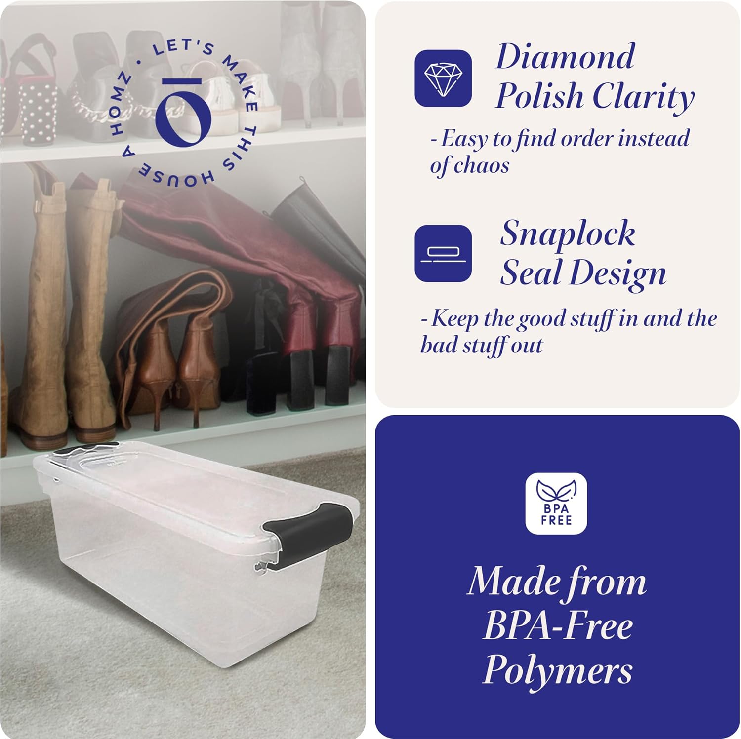 HOMZ 5-Pack Latching Lid, Clear Plastic Storage Organizer Bins, 7.5 Quart, Gray Latch - Stackable Organizing Containers for Home, Garage, and Office
