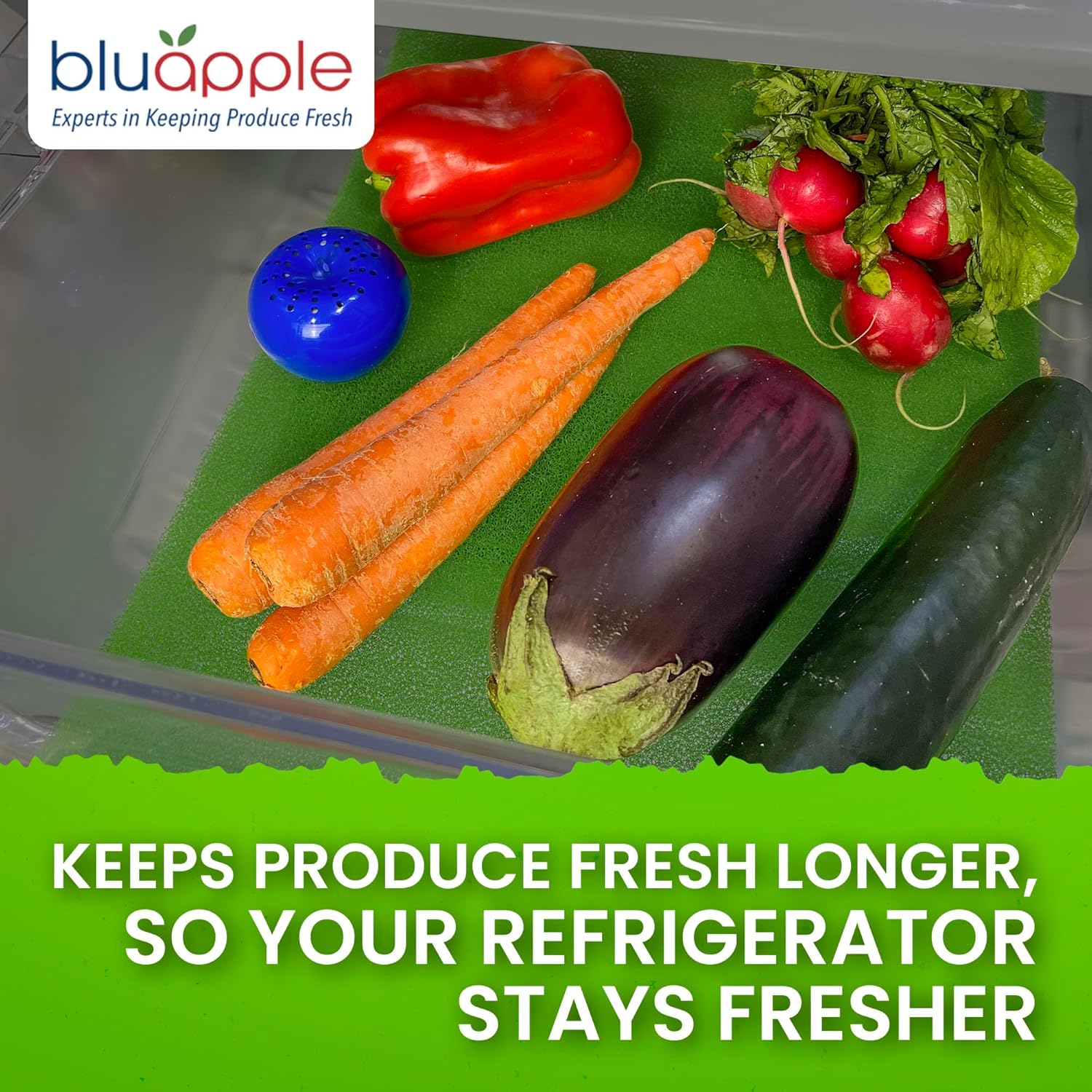 Bluapple FreshMats - Refrigerator Bin Liners, Fridge Drawer Mats - Keeps Produce Fresh Longer, Prevents Bruising, Promotes Air Circulation - BPA-Free Polyurethane Foam - (4-Piece Set, 12"x15", Green)