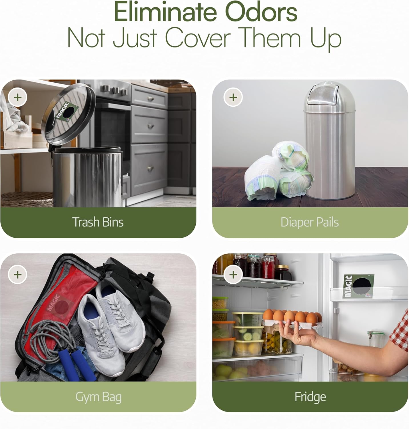 Odor Magic - Activated Charcoal Fridge Deodorizer - Better than Baking Soda - Peel & Stick Kitchen Deodorizer & Air Freshener for Trash Cans, Fridge, Compost, Drawers - Made in USA (1 Pack)