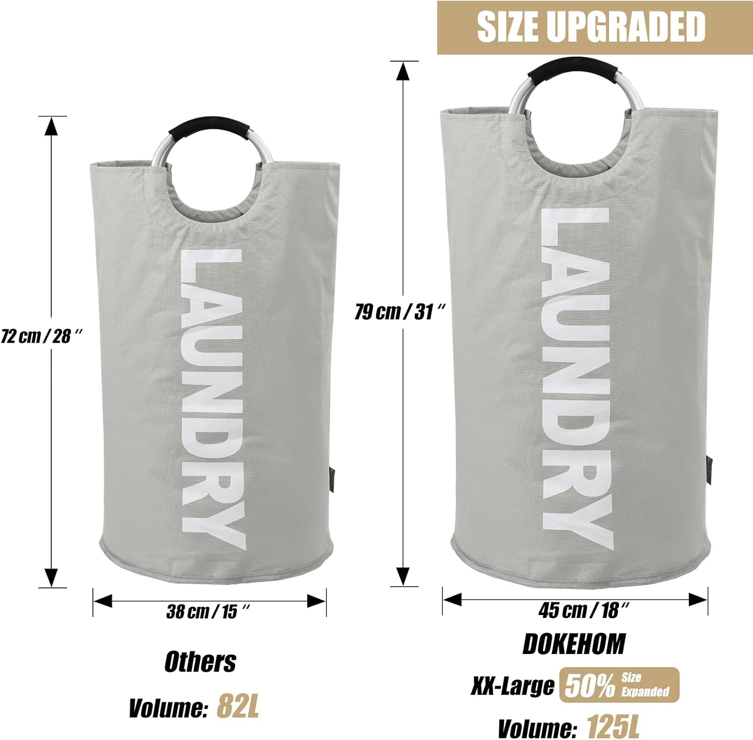 DOKEHOM 125L X-Large Collapsible Washing Laundry Basket Bag (7 Colors) for Bedroom, Fabric (Grey, XL)