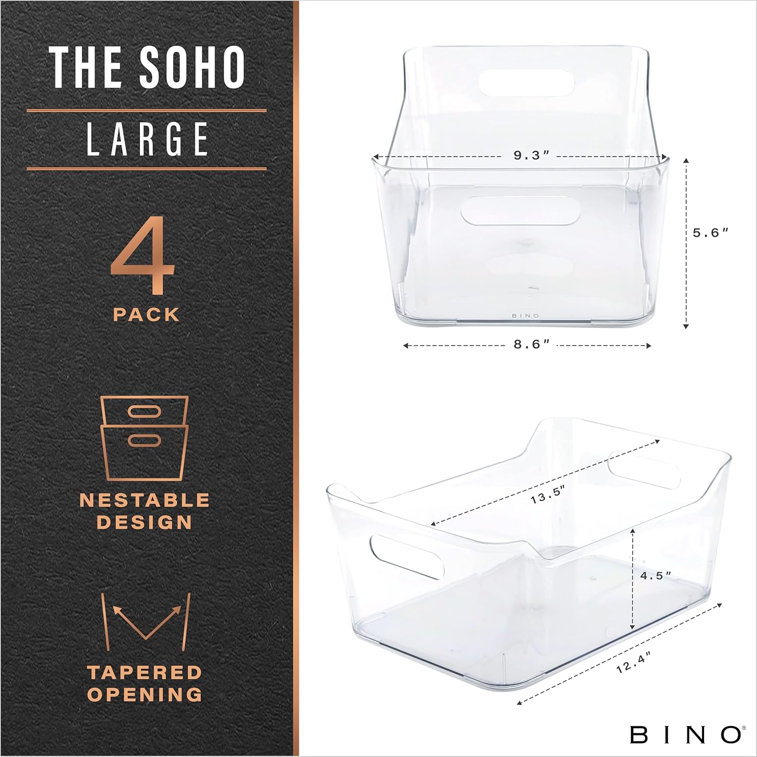 BINO | Plastic Organizer Bins, Large - 4 Pack | The SOHO Collection | Multi-Use | Pantry & Freezer Organizer Bins | Plastic Storage Containers for Home & Kitchen Org
