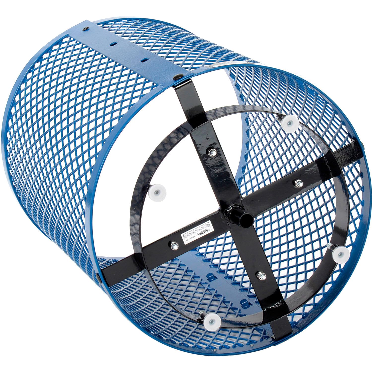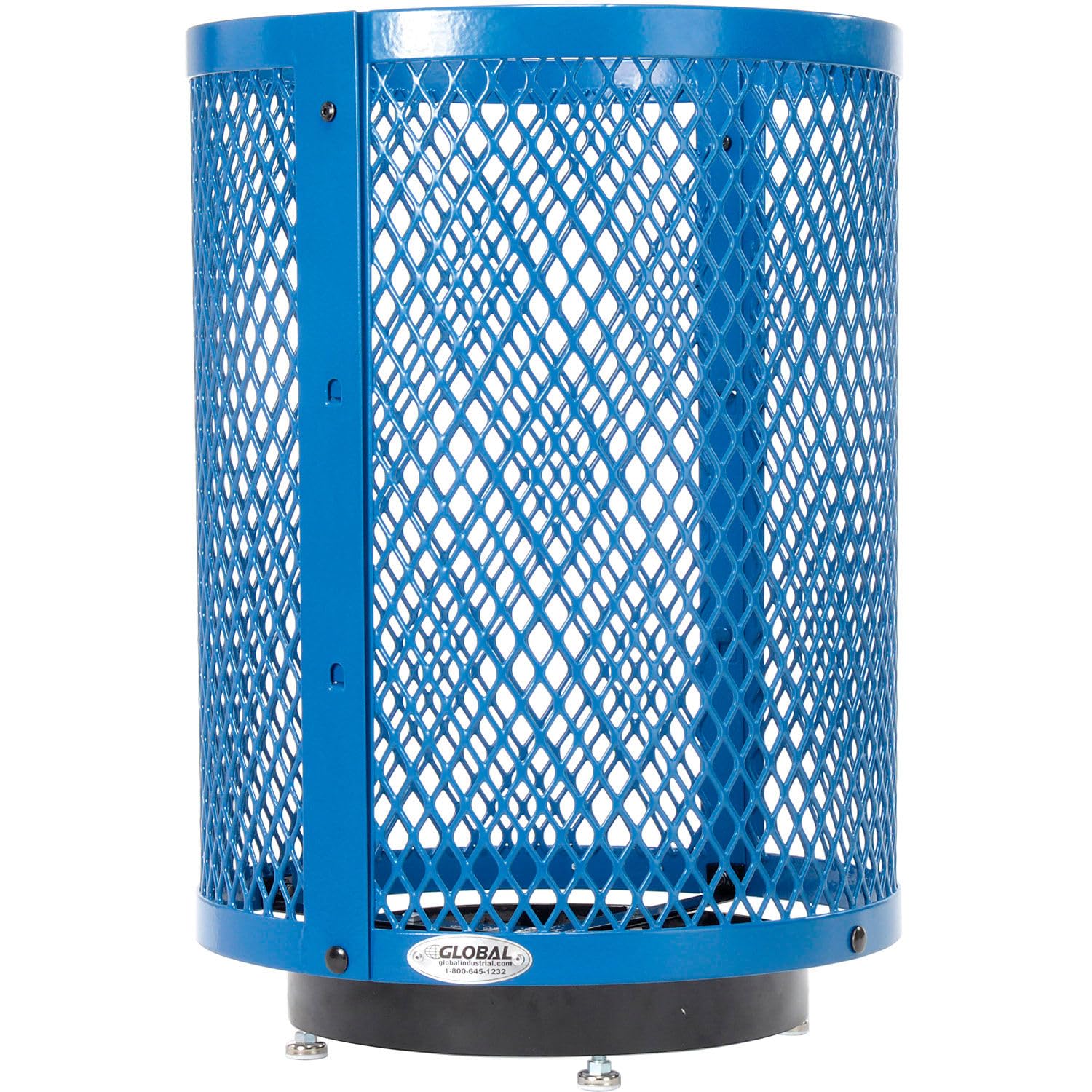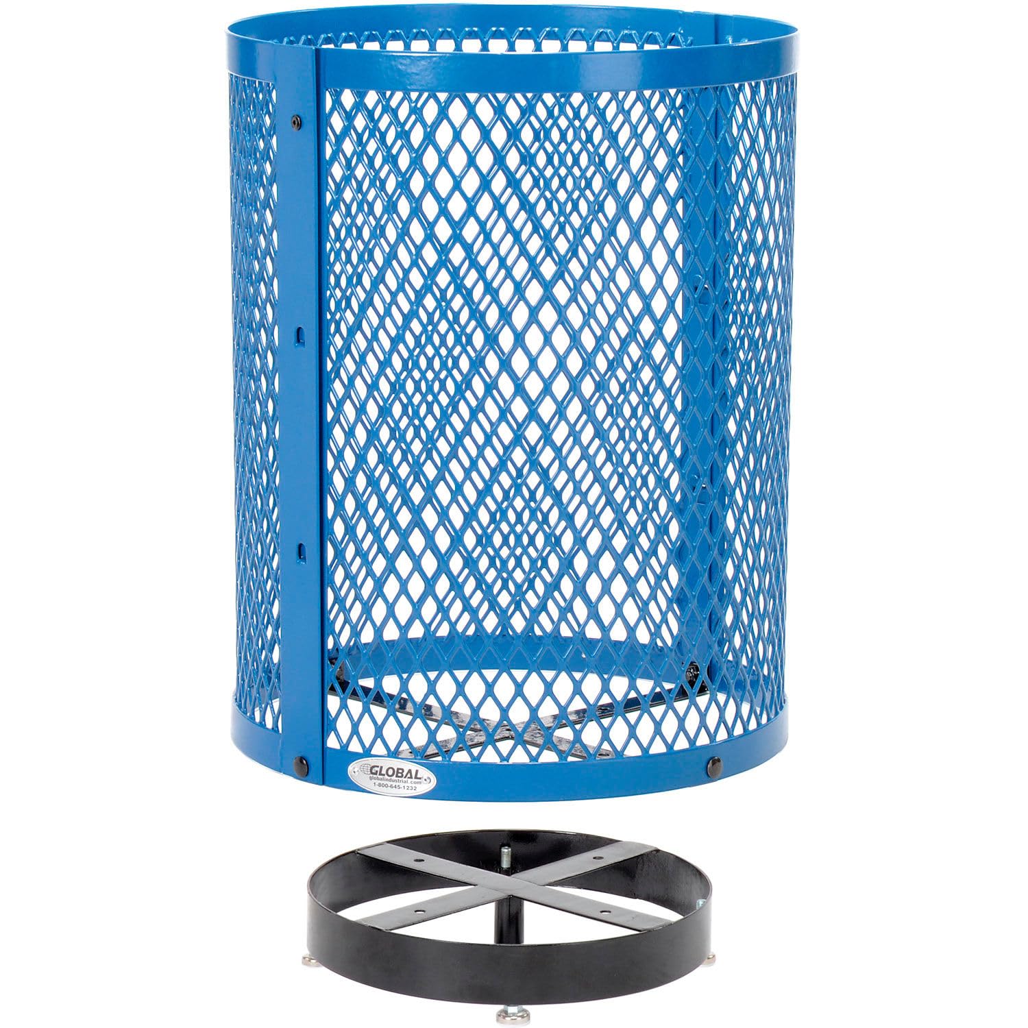 Global Industrial Outdoor Diamond Steel Trash Can with Rain Bonnet Lid, Raised Base and Plastic Liner, 36 Gallon Capacity, Blue, Thermoplastic Coating, 23-1/2" Diameter, 43-1/2"H