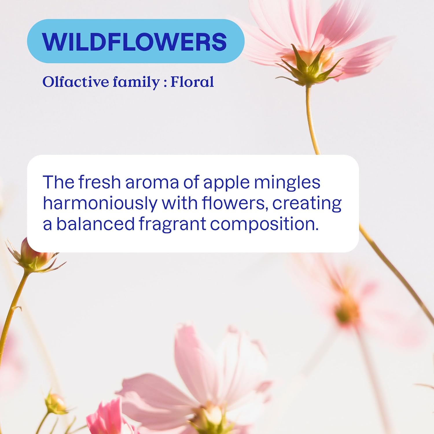 - WILDFLOWER FRAGRANCE: This softener's fresh apple aroma blends harmoniously with flowers and deep patchouli, enveloping your laundry in a fresh floral fragrance.