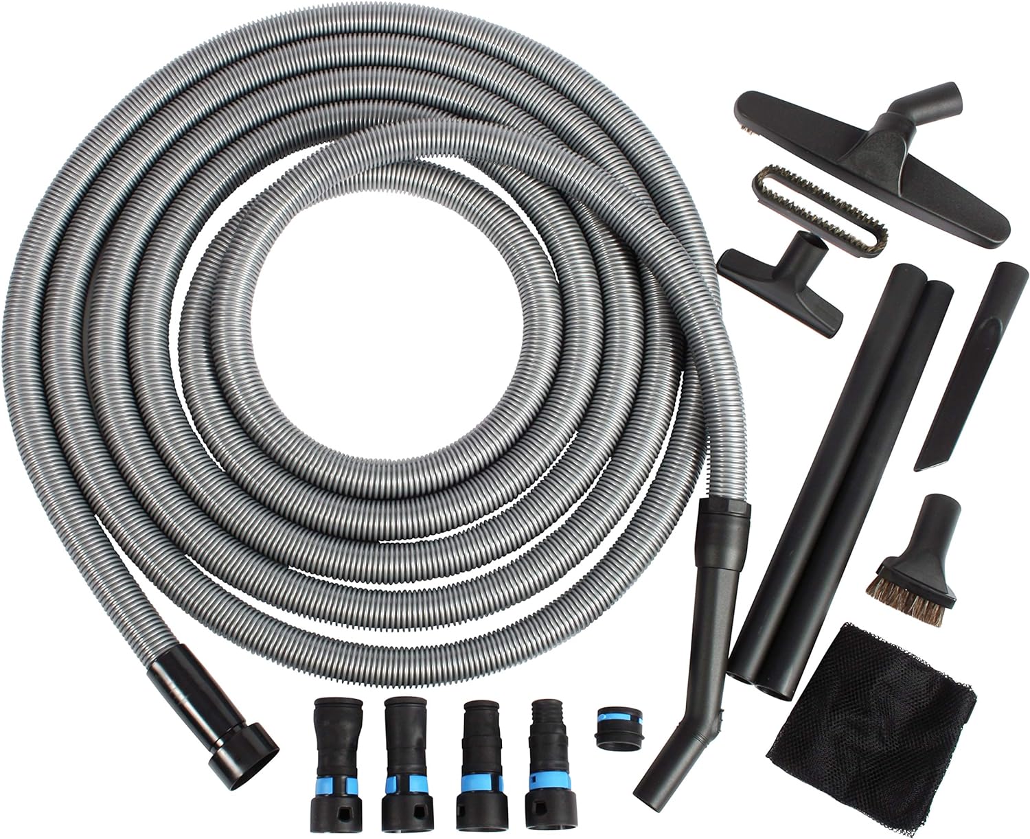 Cen-Tec Systems 95292 30 Ft. Home and Shop Vacuum Hose with Expanded Multi-Brand Power Tool Dust Collection Adapter Set and Full Attachment Kit, Black, 30 Ft. Hose