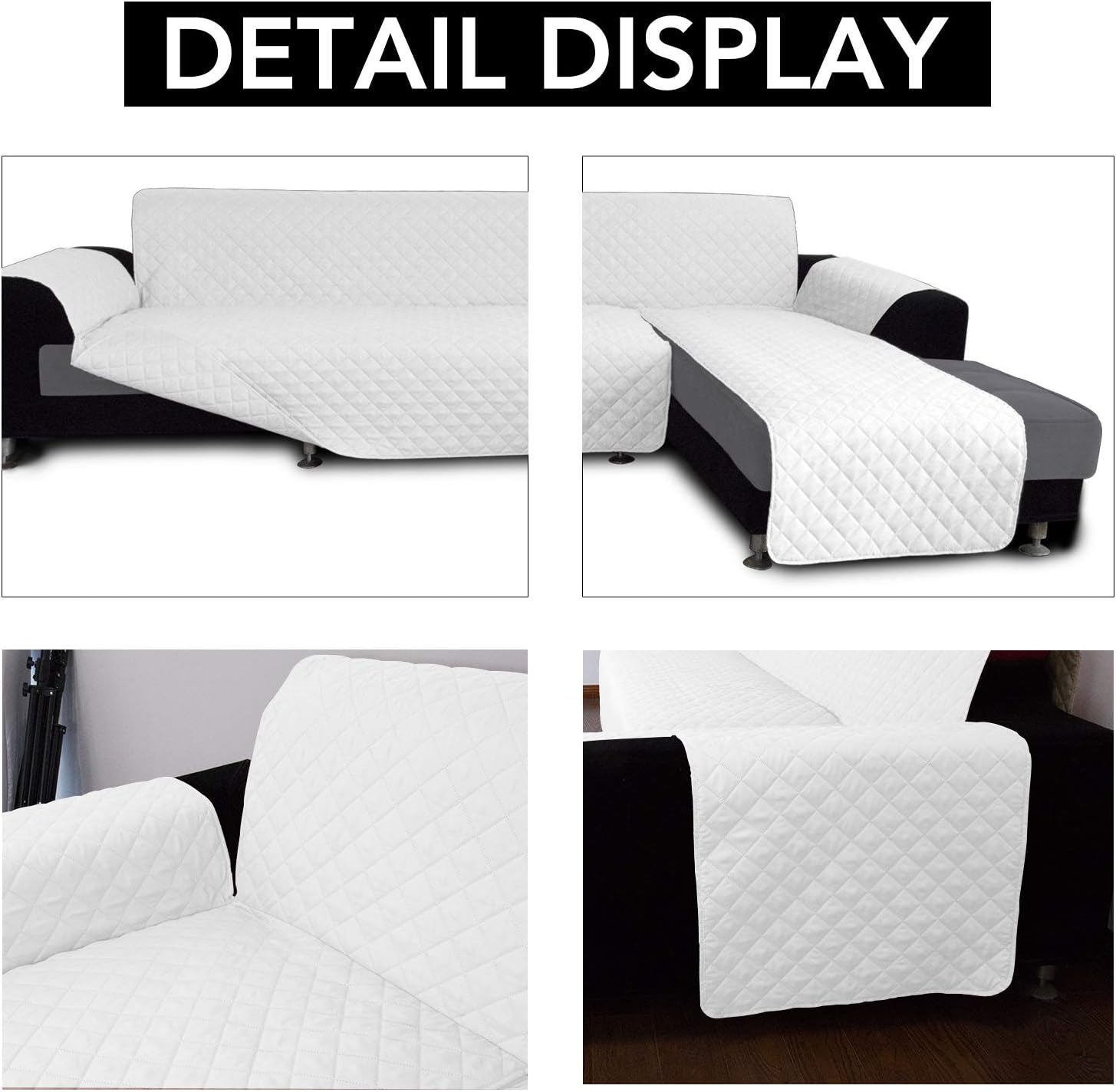Easy-Going L Shape Sofa Slipcover - Sectional Couch Cover with Chaise - Reversible Sofa Cover for Pets & Kids (Large, White/White)