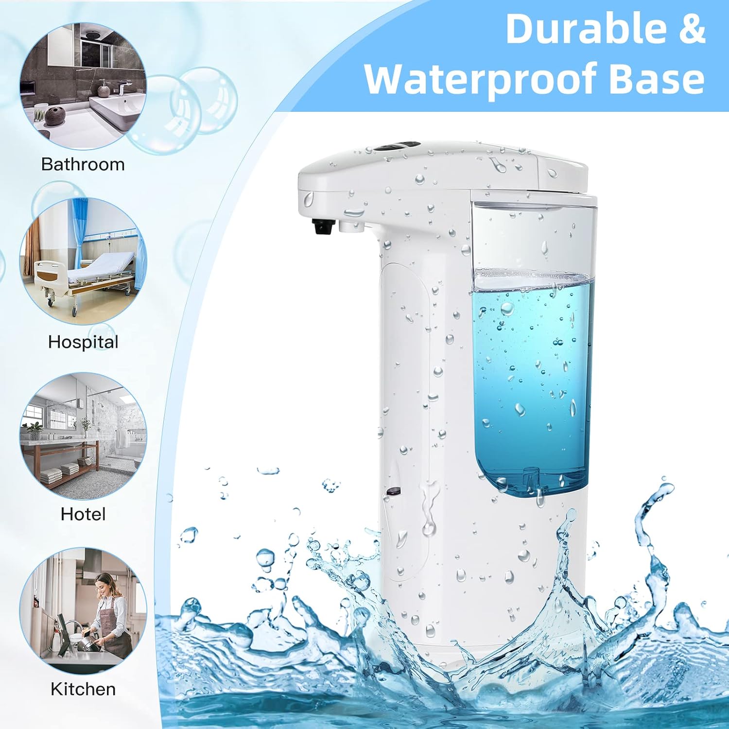- 【Large Capacity】: The smart soap dispenser with 400ml/13.5oz high capacity can wash our hands more than hundreds of times on a single fill. In high-use bathrooms and kitchens, we reduced the number of frequent soap refills a lot!