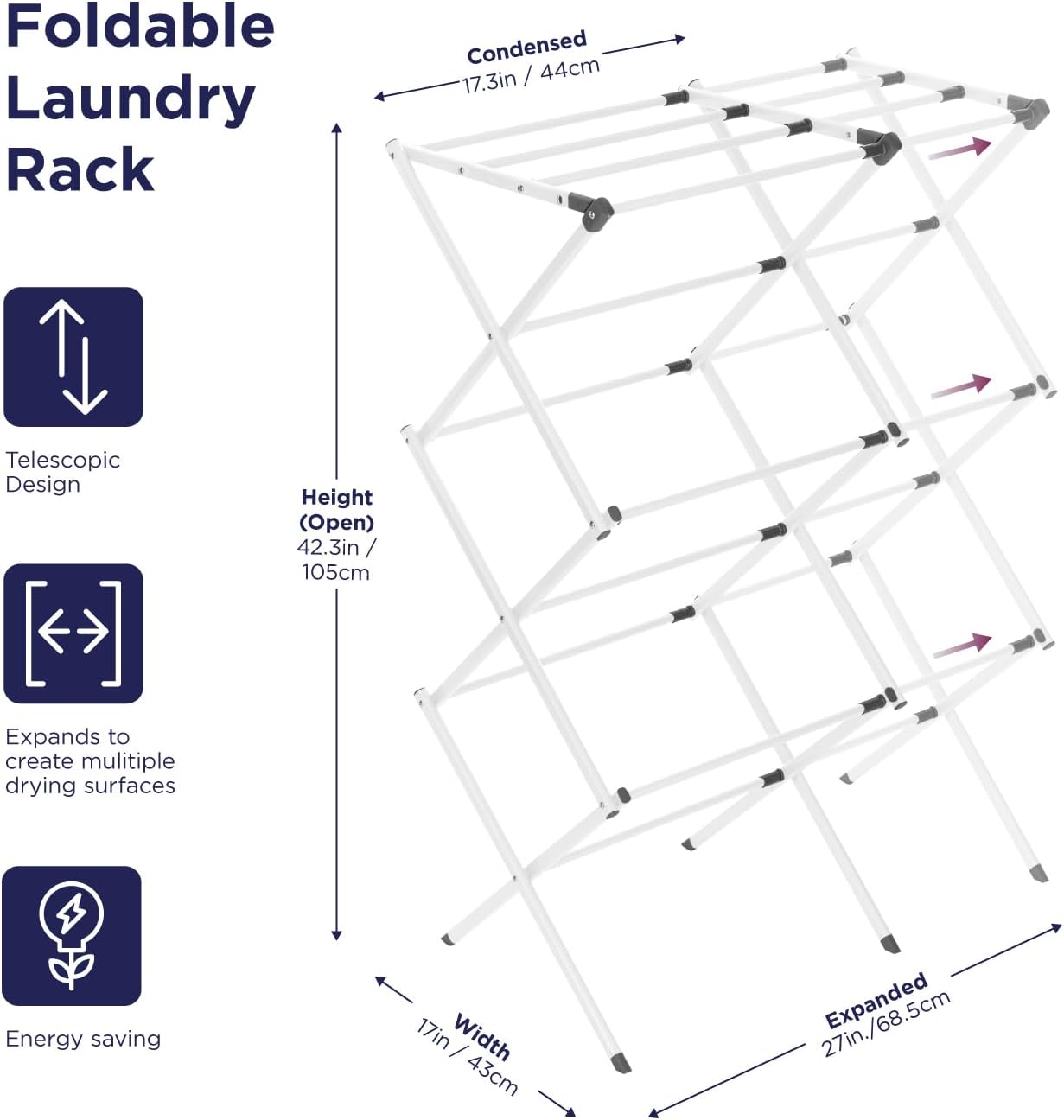 BLACK+DECKER 3 Tier Expandable Collapsing Foldable Laundry Rack for Air Drying Clothing, Space Saving Heavy Duty Lightweight Metal Drying Rack(White)