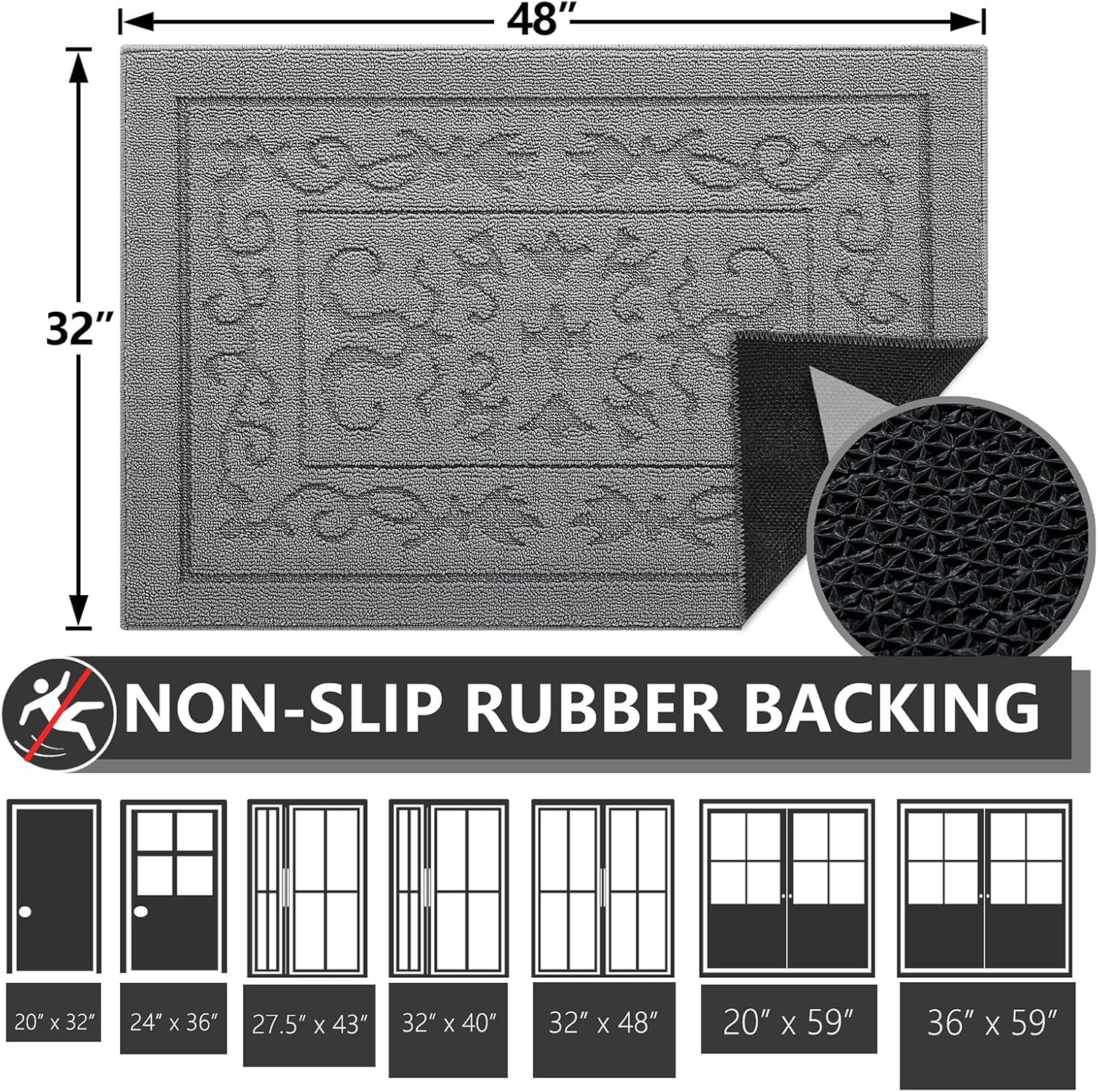 FONEYI Indoor Door Mat 32" x 48", Dirt Trapper Door Mats Non-Slip Entryway Rugs Washable, Absorbent Resist Dirt Welcome Mat, Low Profile Inside Floor Mats for Front Back Door and Entryway, Light Grey