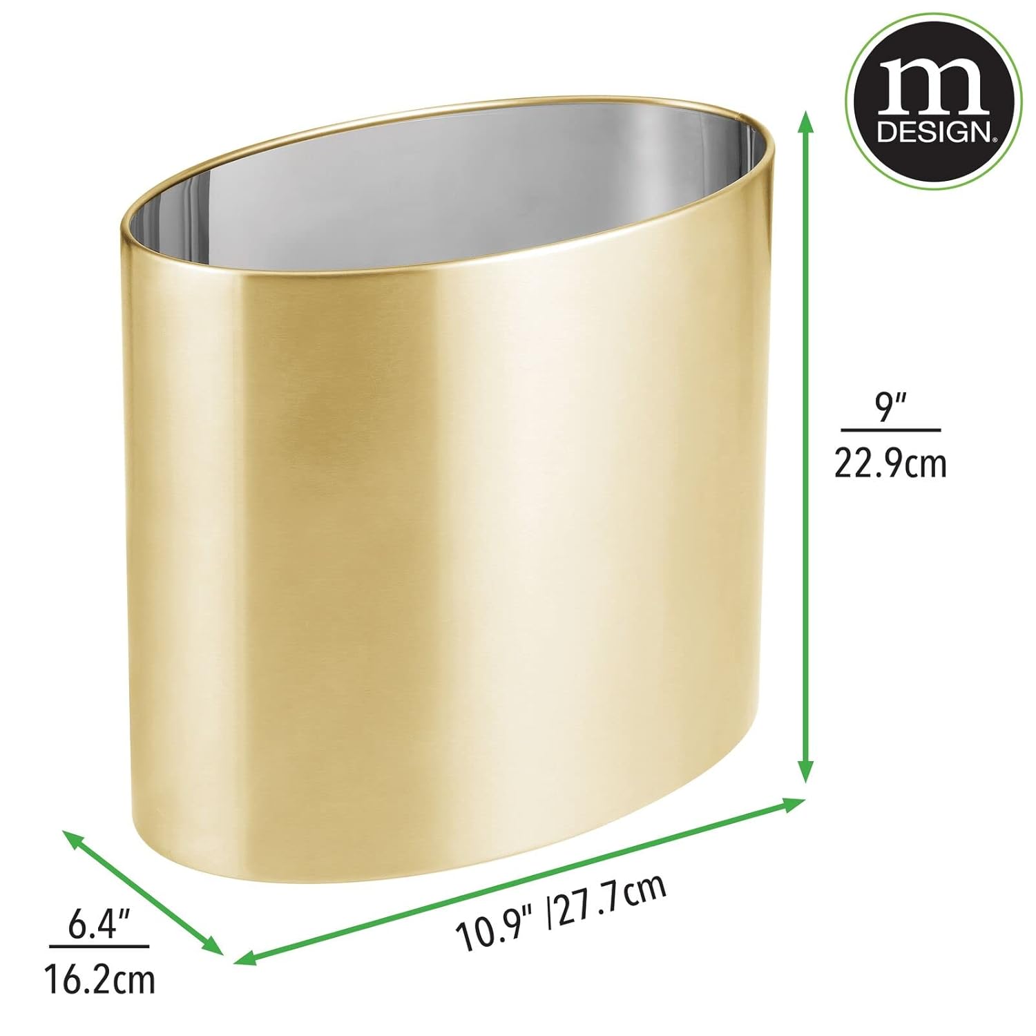 mDesign Stainless Steel Metal Oval Trash Can, 7.9 Liter/2.09 Gallon Wastebasket, Garbage Basket Bin for Bathroom, Bedroom, Kitchen, Home Office, Holds Waste and Recycle, Mirri Collection, Soft Brass