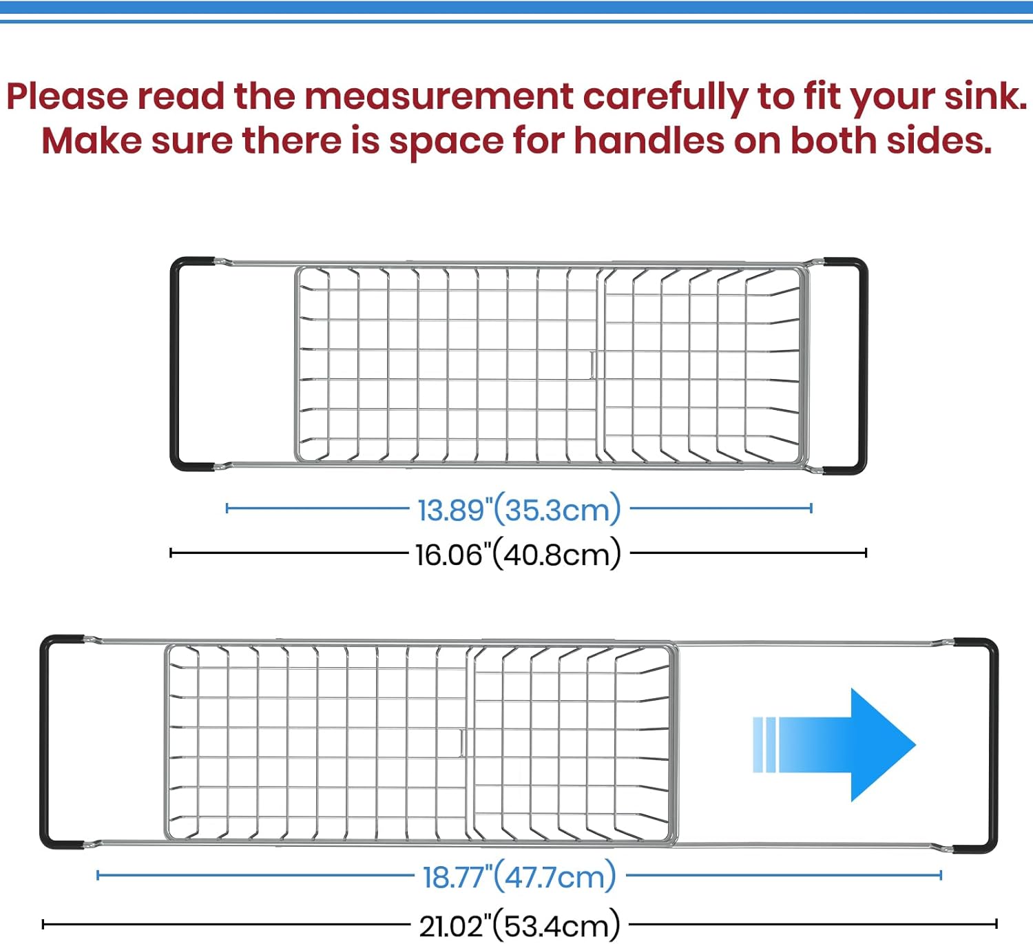 - TELESCOPIC SINK STORAGE RACK - The kitchen sink organizer expands from 16.06" to 21.02" wide, increasing available storage space and is more flexible than other sink organizers. Perfect for sinks from 16 to 21 inches in length or width.