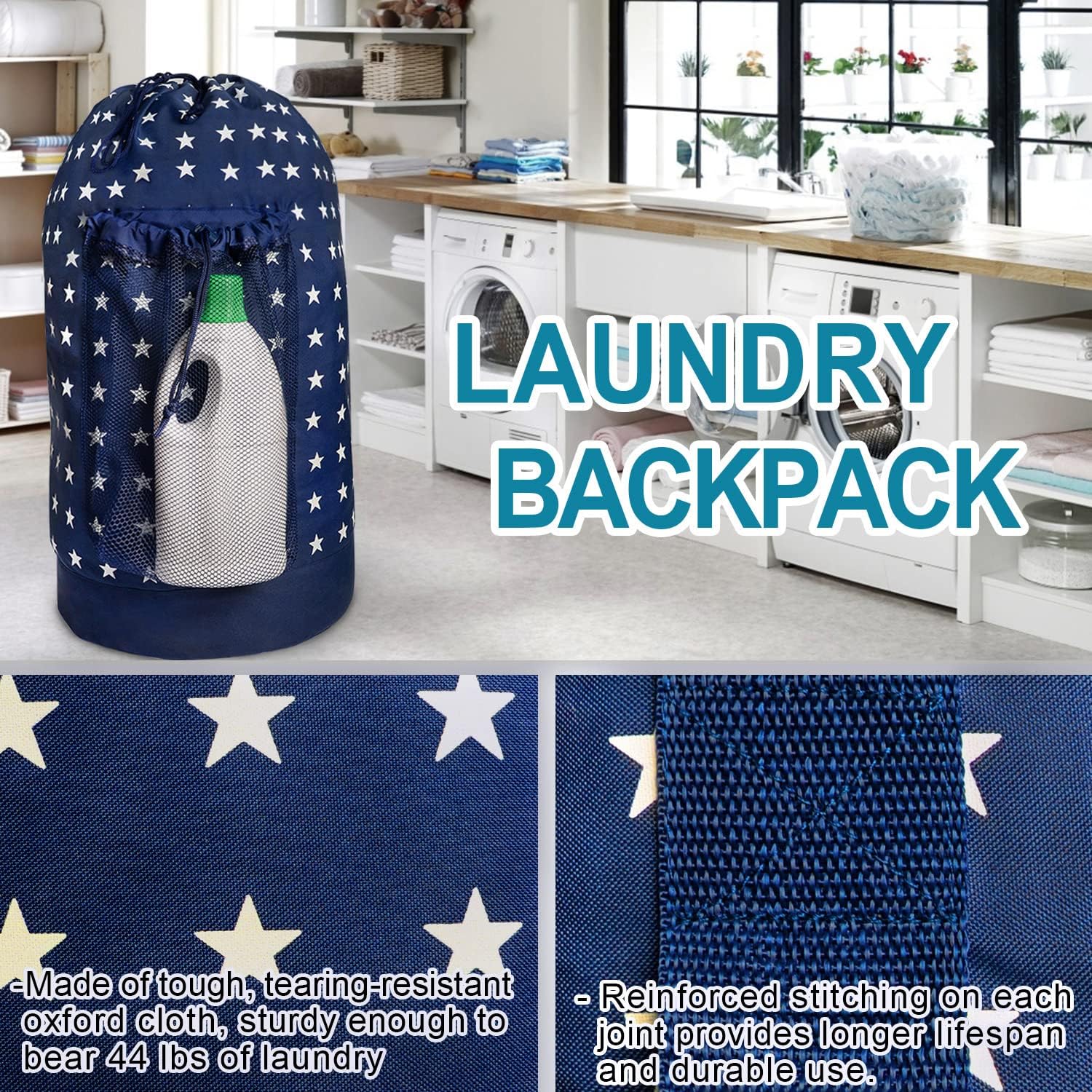 Dalykate Backpack Laundry Bag, Laundry Backpack with Shoulder Straps and Mesh Pocket Durable Nylon Clothes Hamper Bag with Drawstring Closure for College, Travel, Laundromat, Apartment
