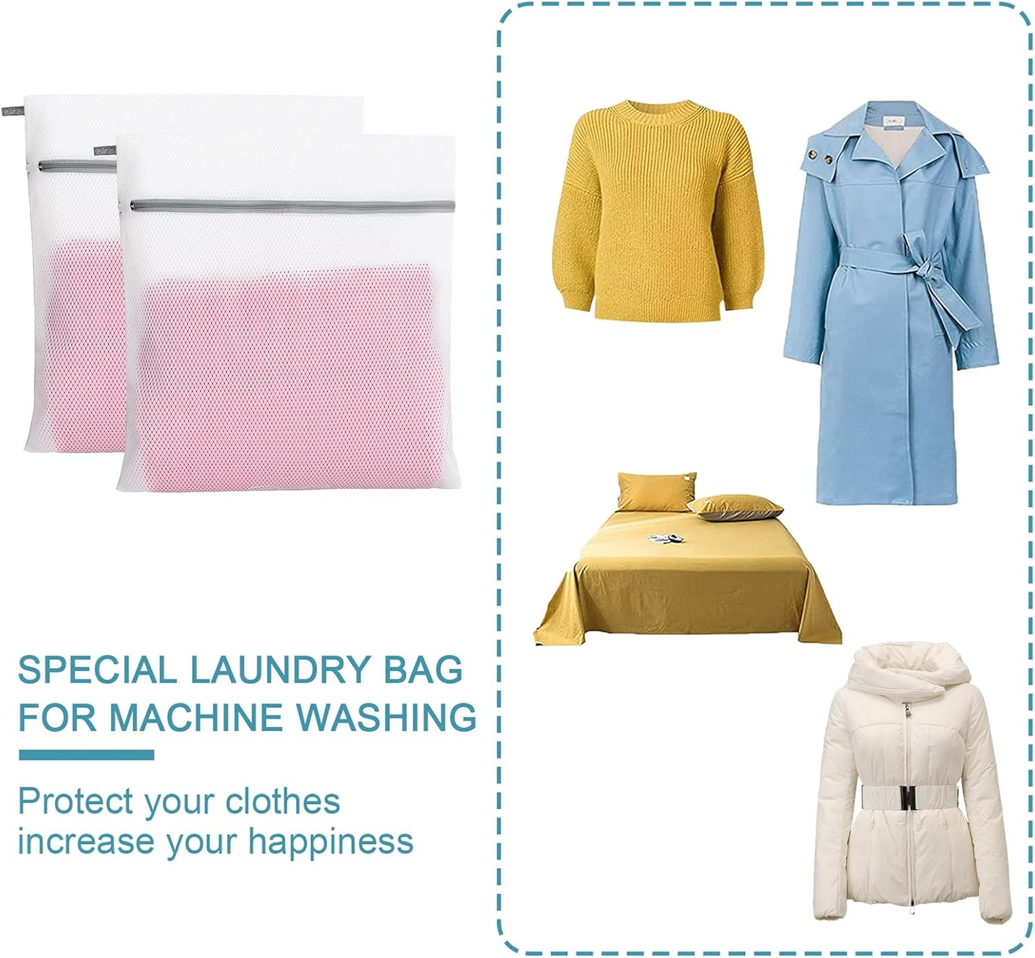 - The delicate laundry bags include 2 Jumbo Size (24"x 24"). The wash bags can satisfy all your laundry needs. It has large space, make washing more adequate, and cleaner. Suitable for washing clothes, jeans, and other large clothing, As well as bath towels, bed sheets, tablecloth, curtains, and other household items.