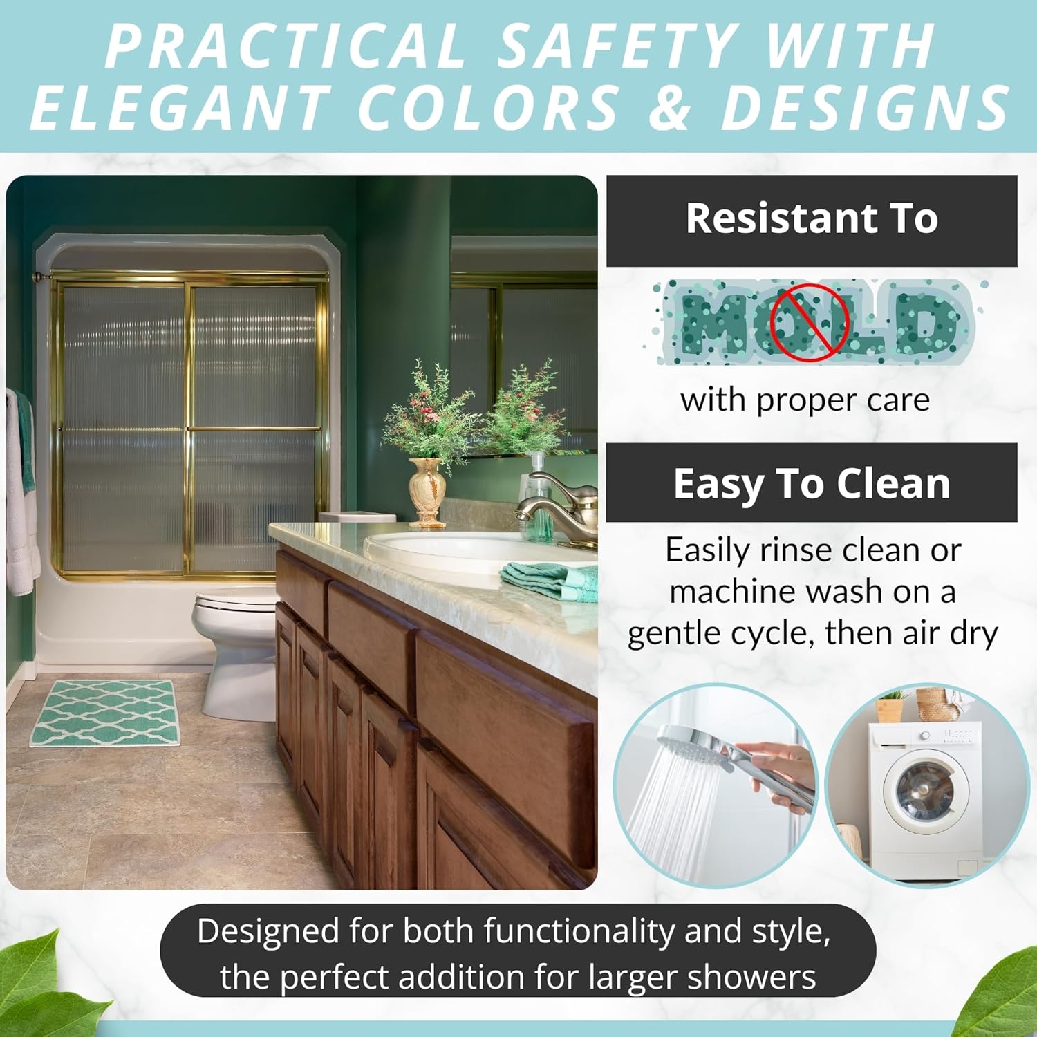 - Who Needs Slippery & Small Rubber Mats that put your safety at risk? This ergonomic shower mat comes in extra large, a full 40" x 16" size, to protectively hug your bathtub floor and prevent accidental falls