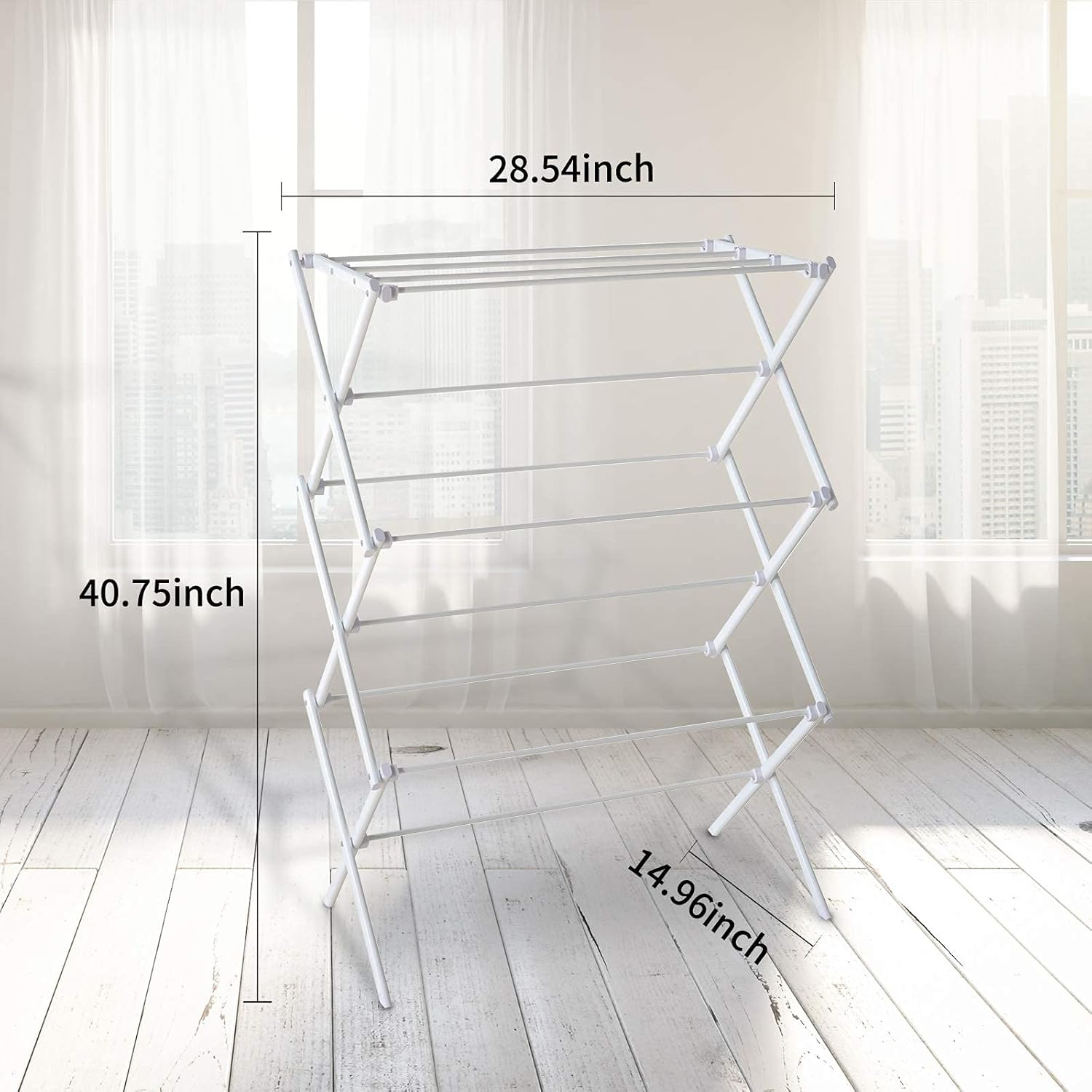 - Easy Setup: The user-friendly, accordion-style design sets up in seconds. Expand the rack into the upright position and hook the top bar into place to secure and lock. When finished, fold it flat for compact storage in a closet or next to the washing machine, always ready for the next use