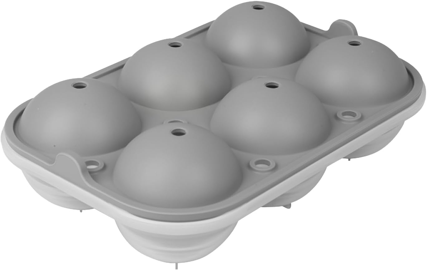 - [MAKE 2.5” LARGE ICE BALLS]: The diameter of each cavity is 2.5inch, the size of the entire tray is 8.5*6*2.5inch. Ice tray is great to make 6 large ice spheres at one time. Perfect sized ice balls are really nice touch for cocktails or other beverages. They are fantastic round ice cube trays!