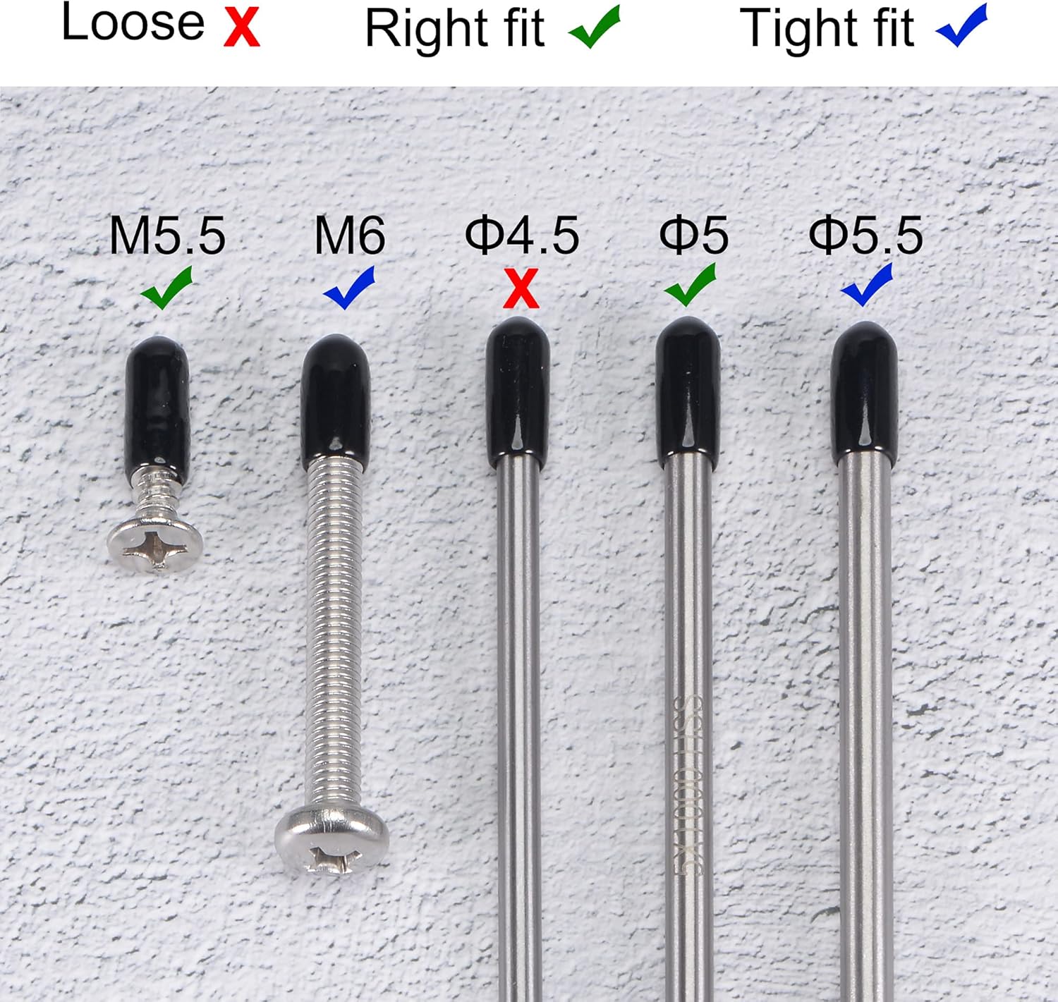 - 【Size Selection】Because rubber material is soft and elastic, we recommend choosing rubber end cap that is slightly smaller than the outer diameter of the product to be protected. For example: the outer diameter of your product is 9.8mm dia, choose the rubber cover of 9.5mm!