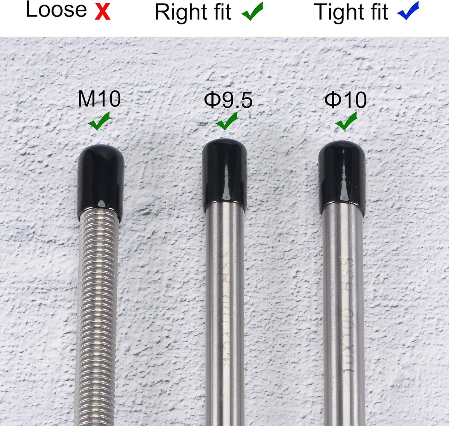 - 【Size Selection】Because rubber material is soft and elastic, we recommend choosing rubber end cap that is slightly smaller than the outer diameter of the product to be protected. For example: the outer diameter of your product is 9.8mm dia, choose the rubber cover of 9.5mm!