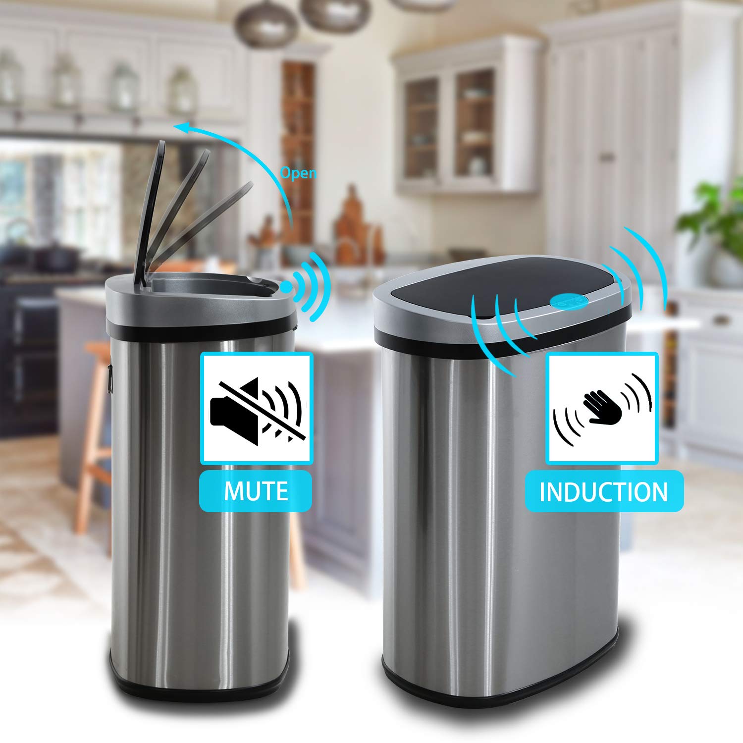 HCB Trash Can Automatic Waste Bin Mute Metal Garbage Can with Lid Stainless Steel 13 Gallon 50 Liter for Kitchen | Office | Bedroom | Bathroom | Living Room, 11” x 16” x 23”
