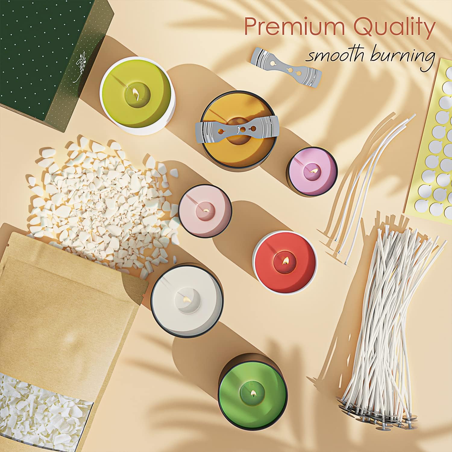 - All-In-One Starter Kit – Everything you need to dive into candle making! Our Hearth and Harbor soy candle wax for candle making includes 5 lb bag wax, 100 cotton candle wicks for candle making, 100 candle wick stickers, 2 wick holders. Perfect for beginners or seasoned DIYers.