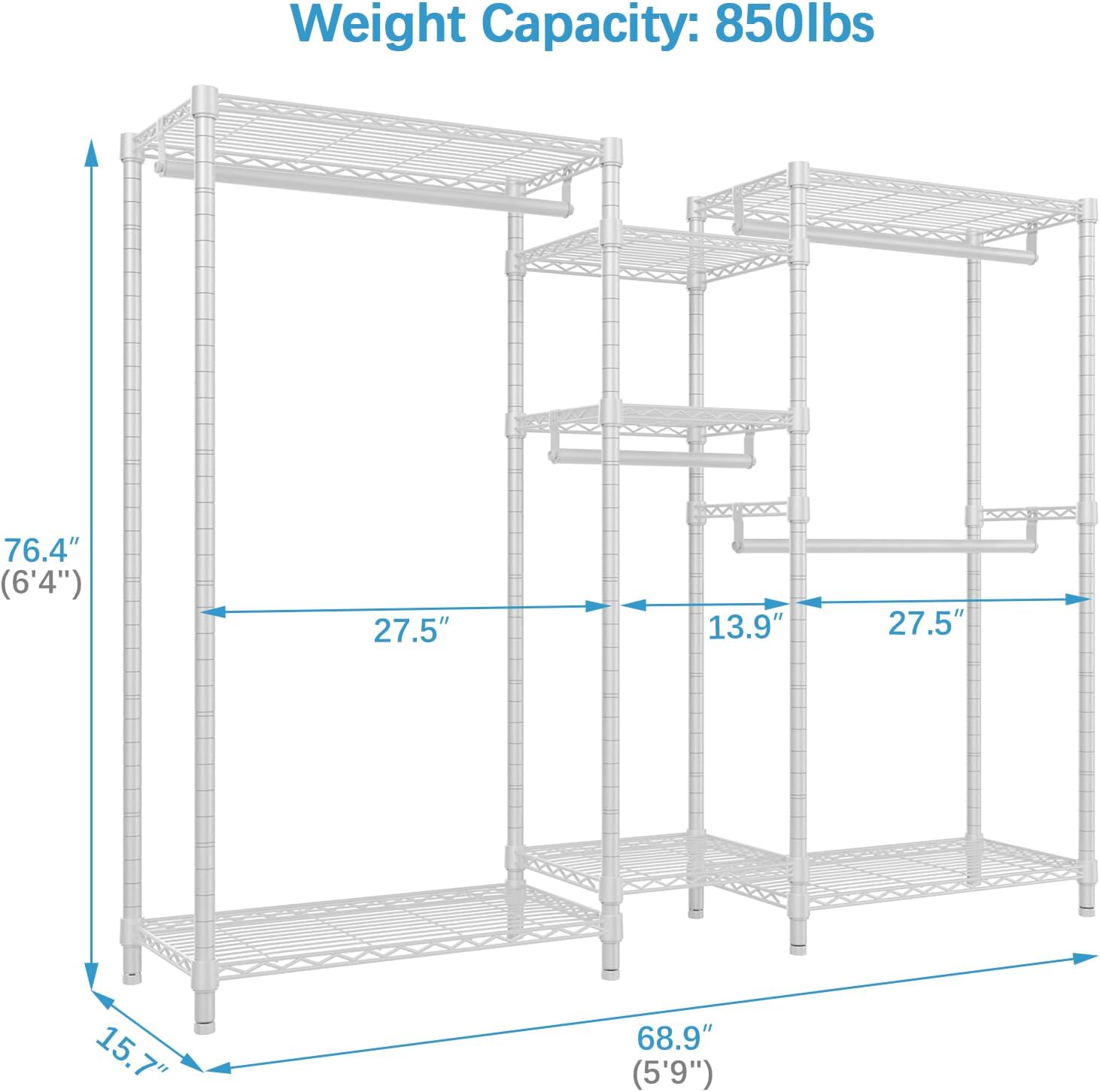 - Multifunction: 5 Tiers Garment Rack ensure you enough space to place your clothes, accessories, bedding, lining, shoes, etc. Single clothes hanging rod holds up to 75 lbs, it is great for hanging suits, coats, long dresses, jackets, pants, shirts or other heavy clothes.