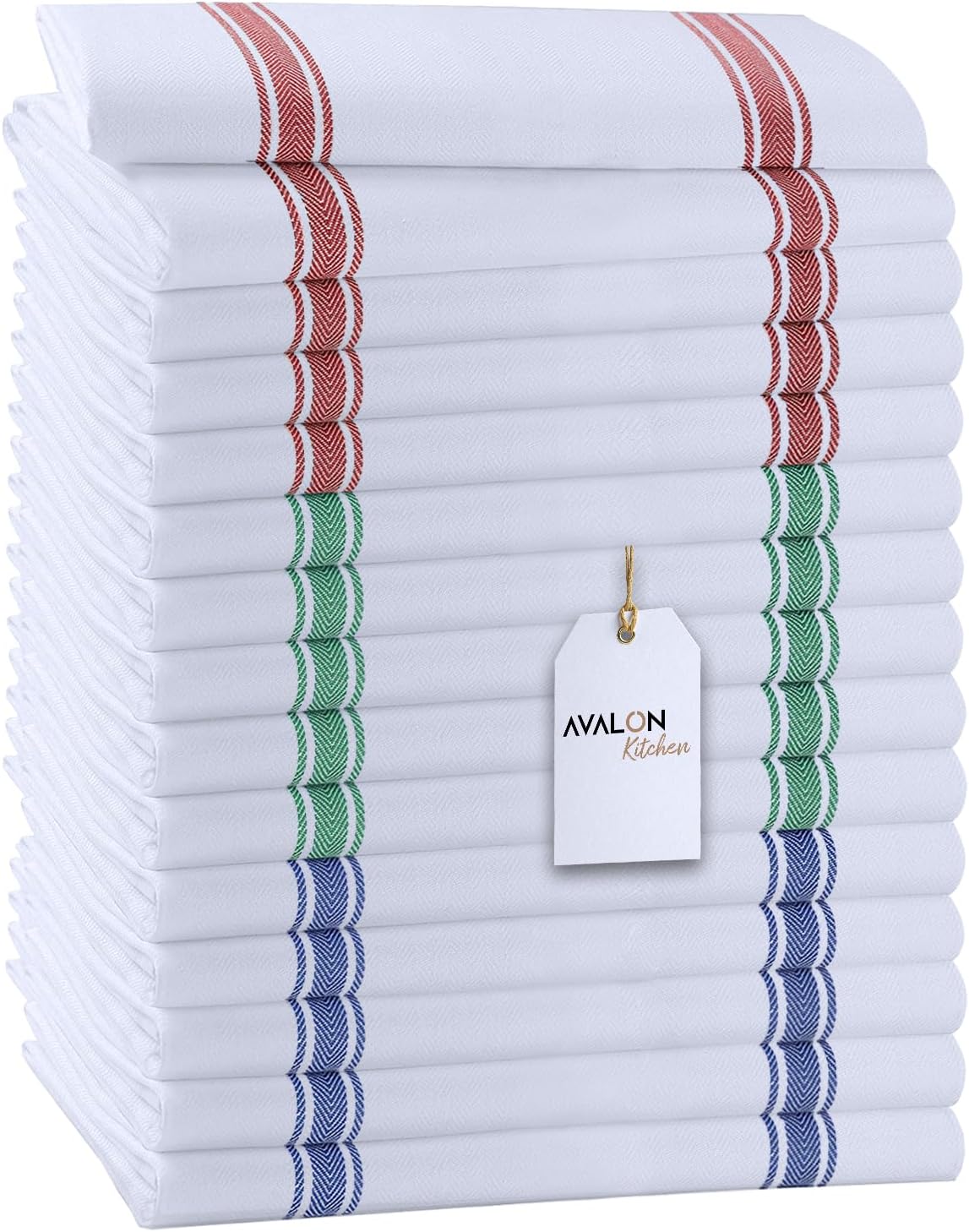 - SOFT AND ABSORBENT – These kitchen towels are made from 100% ring-spun cotton to assist with all your household and kitchen chores. The dish towels are carefully designed with a herringbone weave which gives a soft feel and absorbency to dry effectively.
