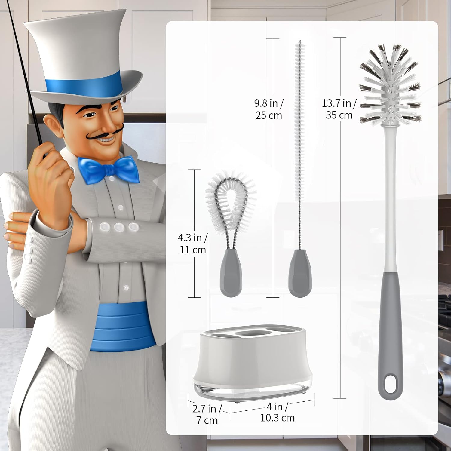MR.SIGA Water Bottle Brush Cleaning Set with Storage Holder, Cleaning Brushes for Tumbler, Straw, Baby Bottles, Drinking Glasses