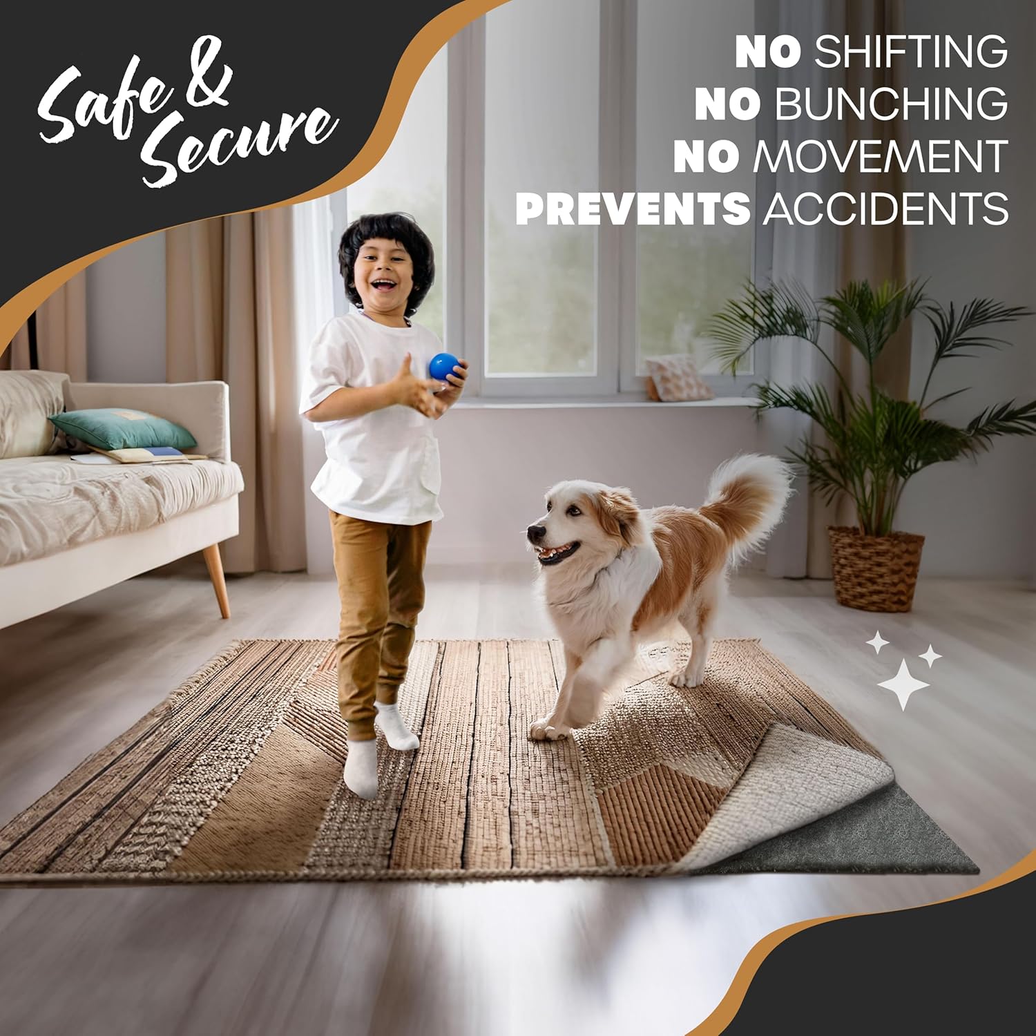 - All-in-One Protection, Cushion & Grip: Upgrade your space with the Nevlers 5x7 Non Slip Rug Pad ! This rug slide stopper balances stability, cushion & grip for the ultimate floor defense. The soundproofing & insulating qualities minimize noise, while its area rug pads for hardwood floors non slip design extends the life of your rug & enhances its appearance. Perfect for workout spaces or homes with kids, this sound-absorbing carpet padding 5x7 area rug gripper keeps your rug safely in place.