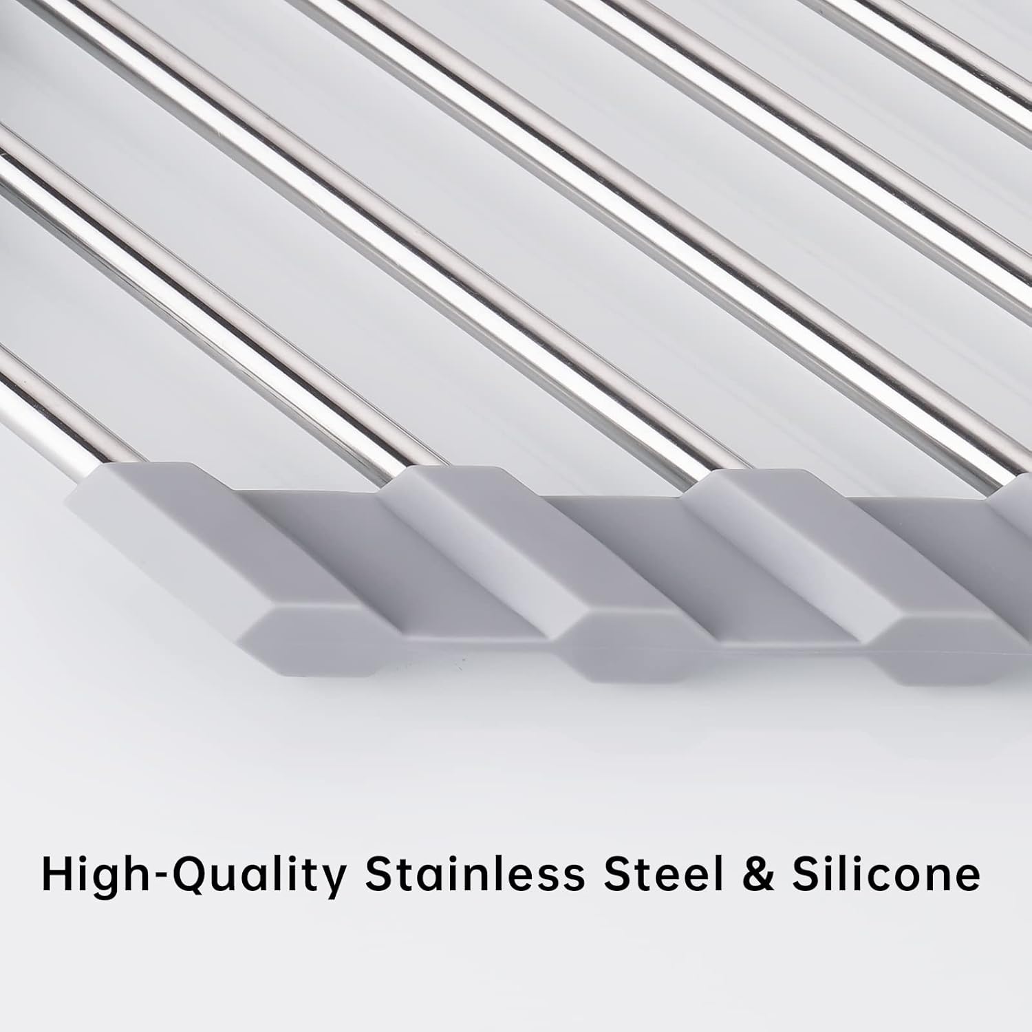 - ✔️【Food Grade Materials】Made of premium quality SUS304 stainless steel and BPA-free food safe silicone edges, this drying rack is waterproof, rust-proof, durable and scratch-resistant. Solid construction with non-slip silicone ends securely attached to stainless steel rods.