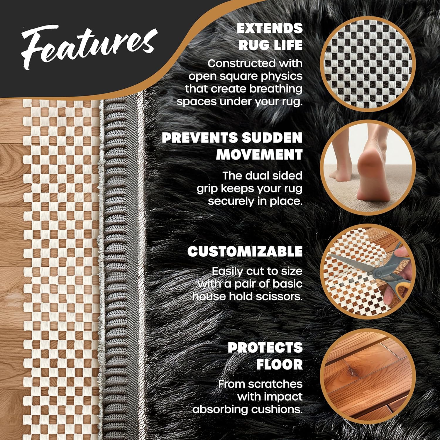 - Custom Fit & Easy Maintenance: Say goodbye to frustrating movement with The Nevlers Rug Anti Slip Pad . Easy to trim with a pair of scissors, theses rug grippers for hardwood floors fit seamlessly beneath any rug. The area rug pad gripper is simple to set up, & cleaning the rug slip pad with a damp cloth or vacuum is a breeze. Whether in the living room, kitchen or bedroom, our handy carpet holders non slip grip elevates the comfort of any space while providing essential carpet grip stability.