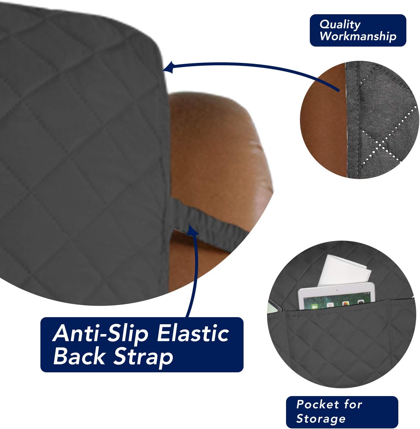 PureFit Reversible Quilted Sofa Cover, Water Resistant Slipcover Furniture Protector, Washable Couch Cover with Non Slip and Elastic Straps for Kids, Dogs, Pets (Oversized Recliner, Dark Gray/Beige)